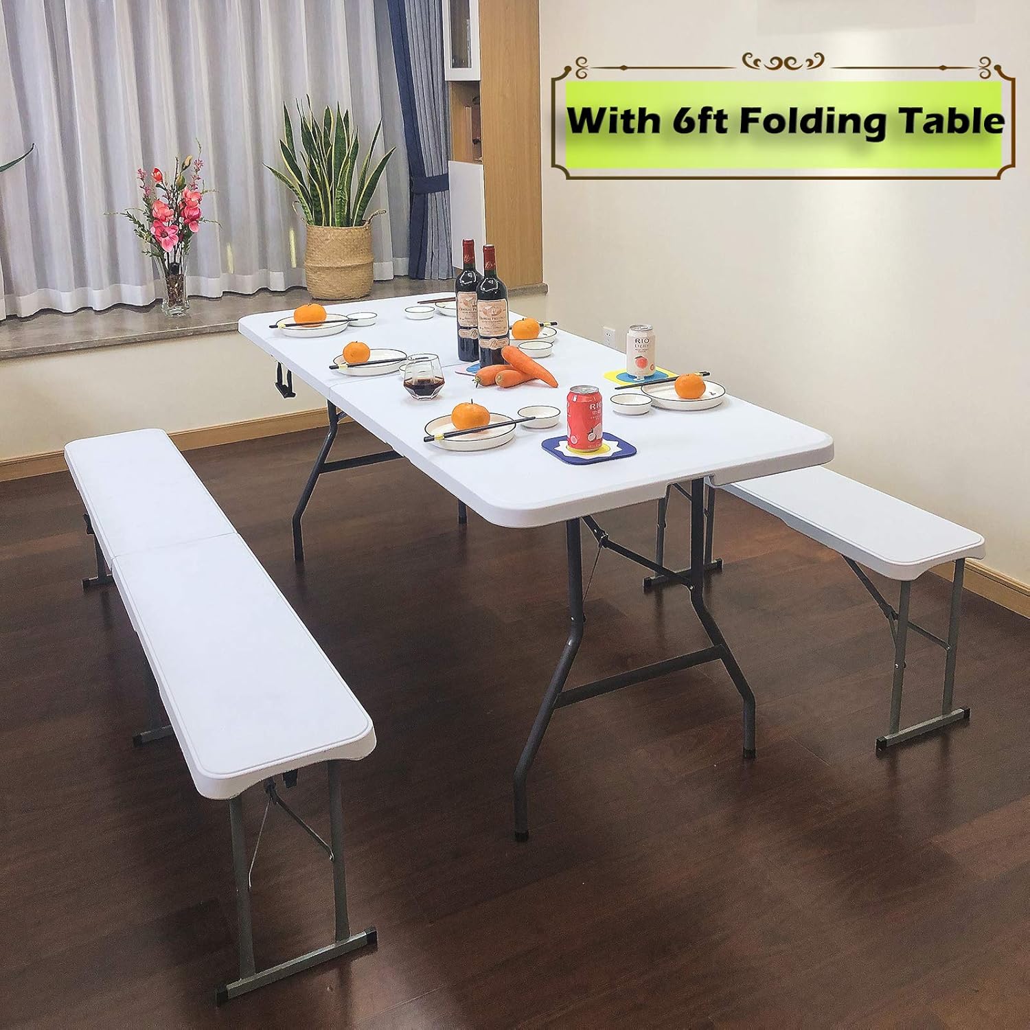 ✅ [Indoor&Outdoor]: Collocated with our 6ft folding table is perfect for outdoor and indoor places such as patio, backyard, garden, casual gatherings, weddings, BBQ, parties, family dinners, etc.