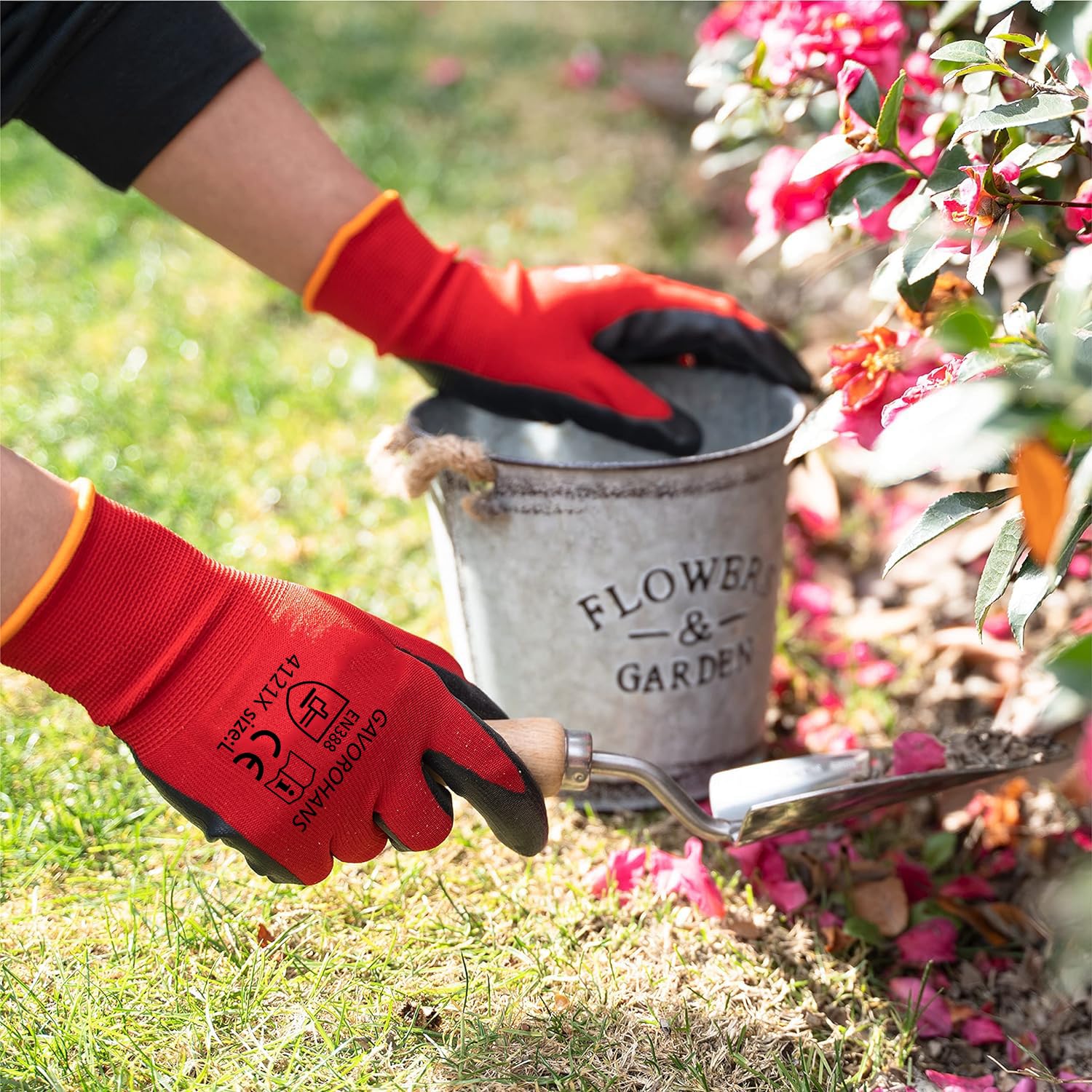 GAVOROHANS 6 Pairs Gardening Gloves Nitrile Coated Work Gloves Colourful Superior Grip Durable Multi-Purpose(Large-9′)