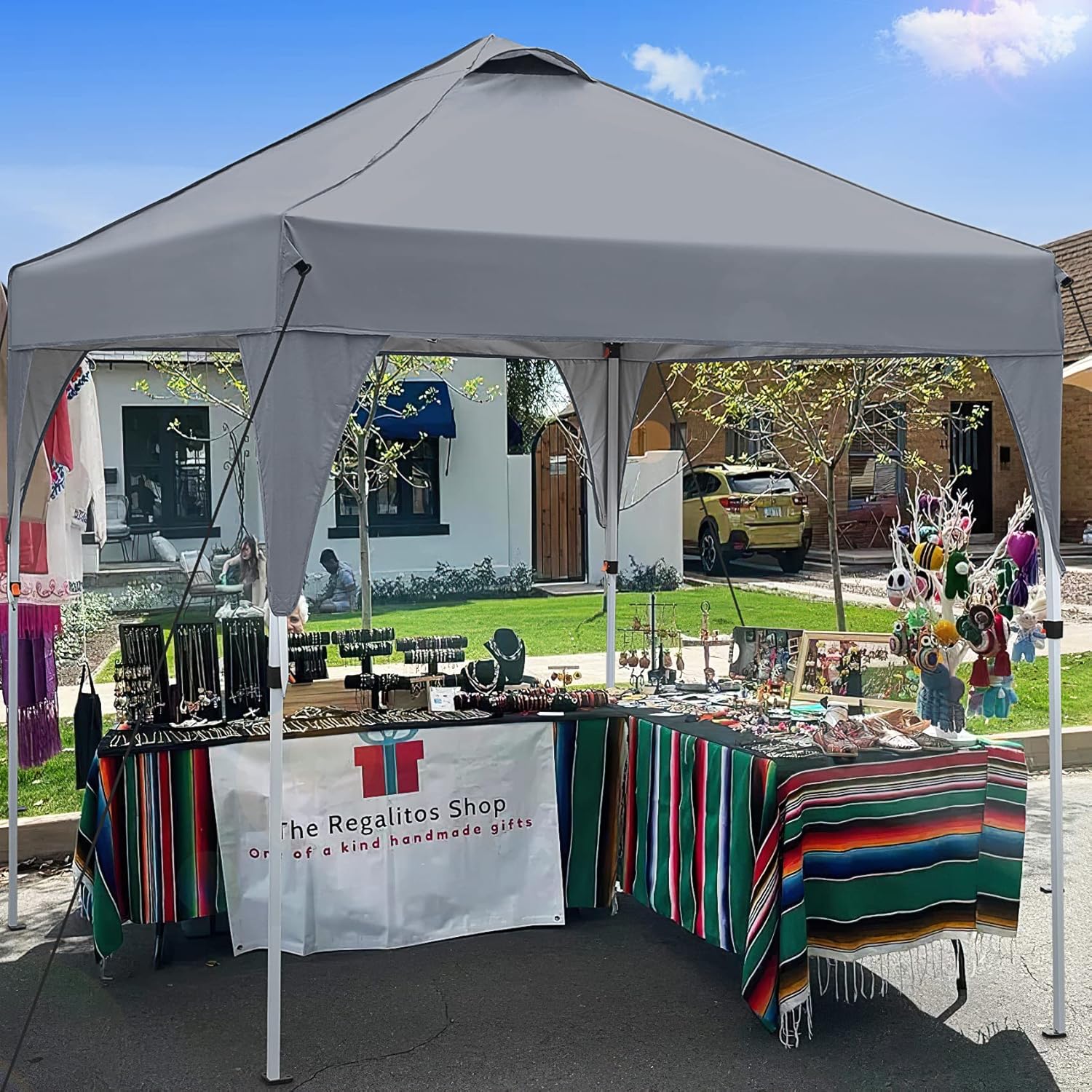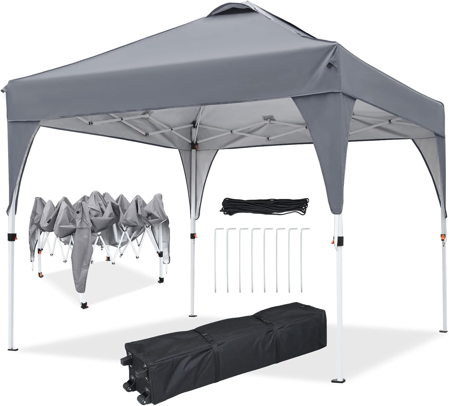 Gazebo, Ej.Victor 2.5×2.5m Pop Up Gazebo Instant Folding with Wheeled Bag, Outdoor Gazebo Tent for Vendor Events, Outdoor Craft Show, Farmers Markets(Grey)