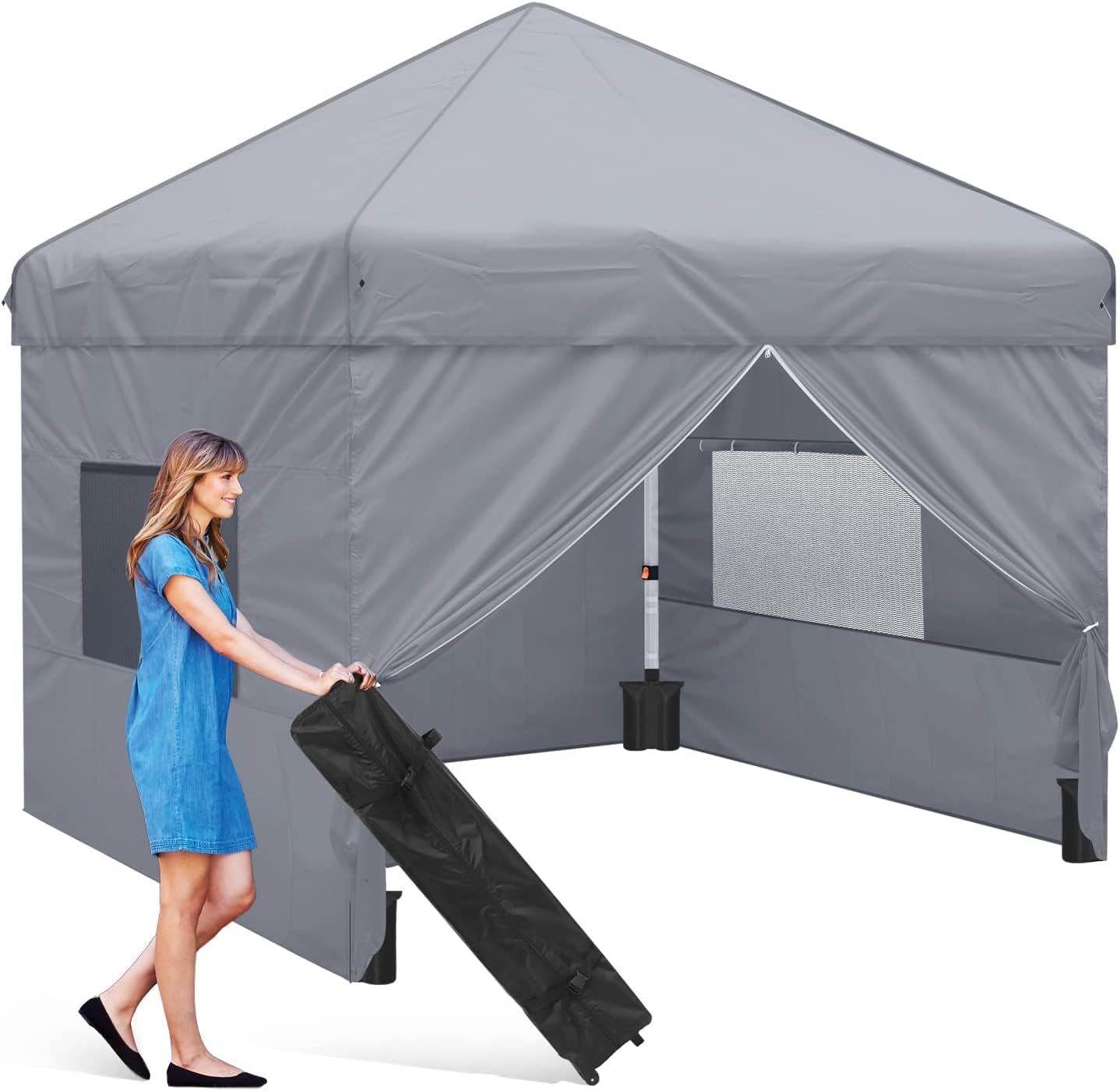 Roller Bag for Easy Transport: This pop up gazebo comes with a convenient roller bag that stores the gazebo frame, top, four sidewalls, four sandbags, four ropes, and eight stakes. Compact and space-saving, the gazebo tent fits in most vehicles and rolls smoothly on its two wheels, facilitating easy transportation wherever you go.