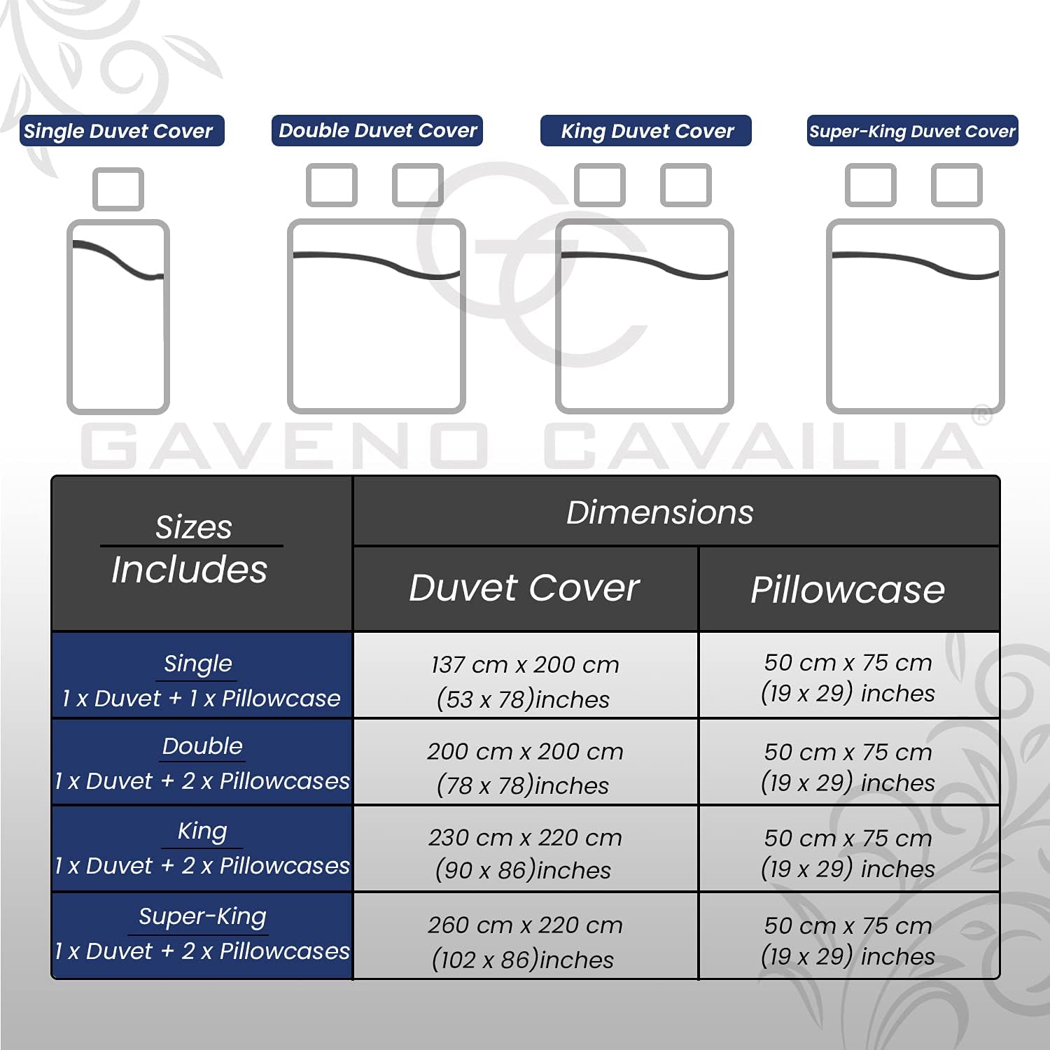 →INCLUDED COMPONENTS: 1 X Double Size Duvet Cover ( 200cm x 200cm ) + 2 Pillow Cases ( 50 x 75 Cm ).