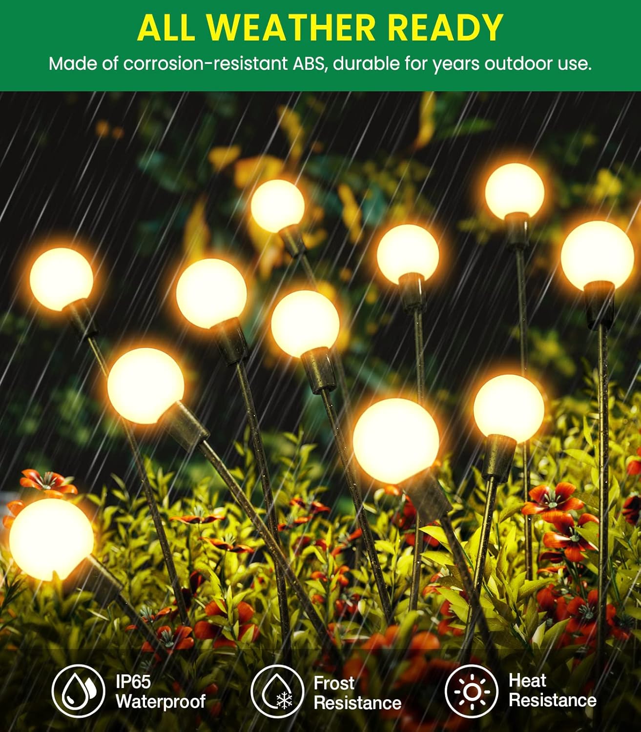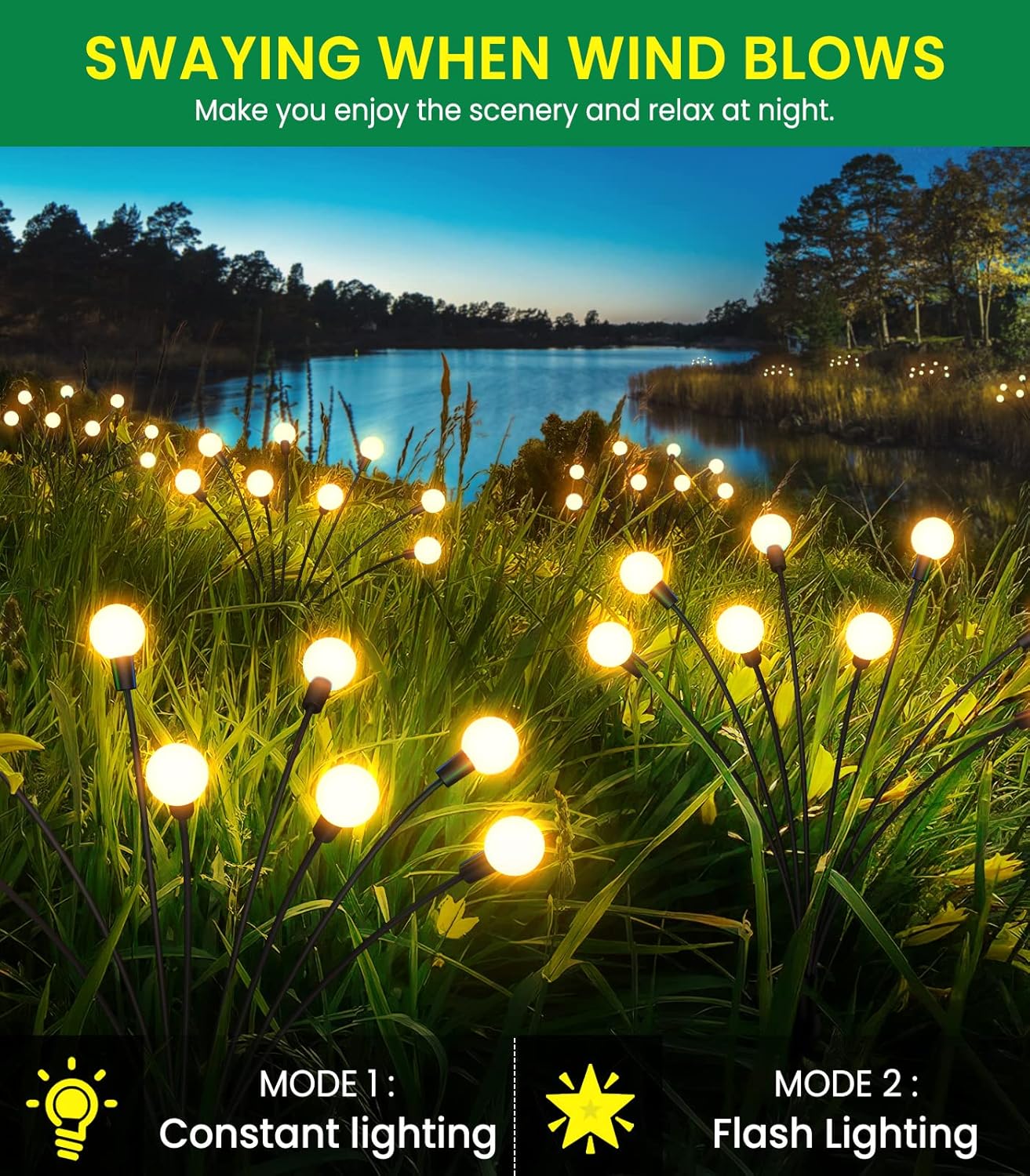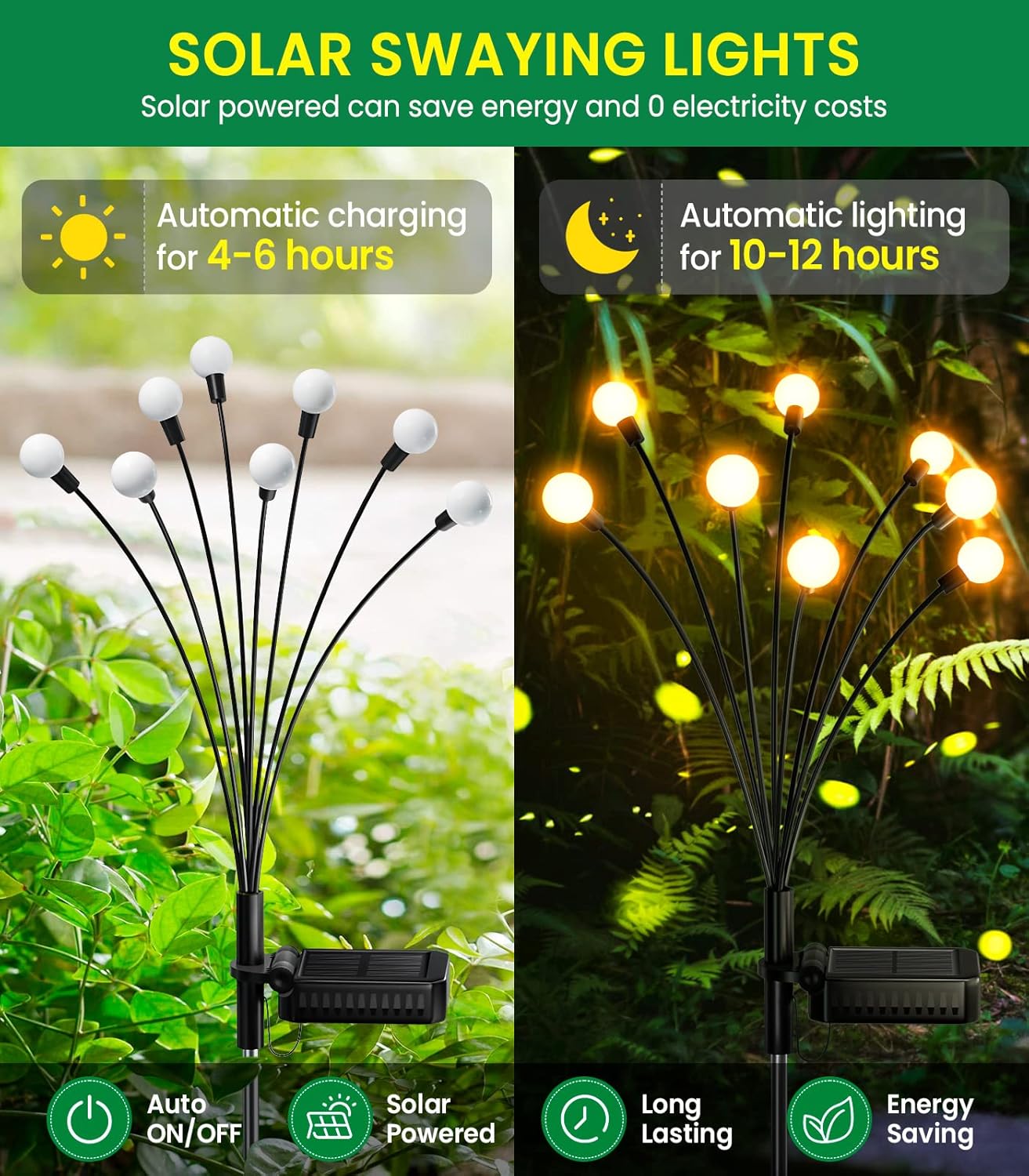 【Swaying with Wind, Like Magic Appearing in Your Garden】 When the breeze blows, solar lights sway with the wind, dancing like fireflies in garden. Our solar swaying lights are designed with more flexible stem than other solar lights, making the solar lights easier to swing in the breeze without clumping together. Pick now and transform your yard into a beautiful and romantic personal paradise at night.
