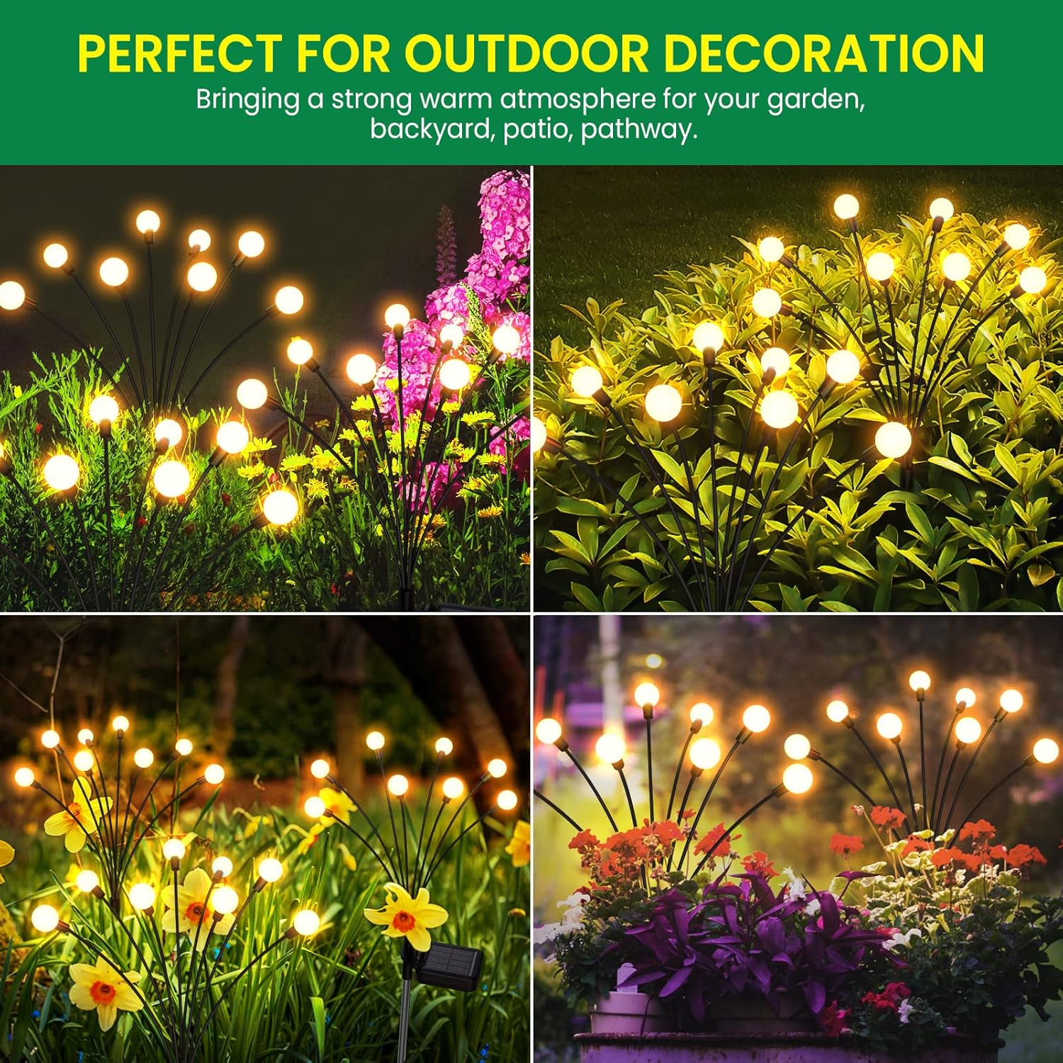 GEARLITE Firefly Solar Lights Outdoor Garden, 4 Pack Super Bright Swaying Solar Garden Lights with 8 LED, Waterproof Garden Lights Solar Powered Christmas Decorations for Pathway Yard Garden Ornaments