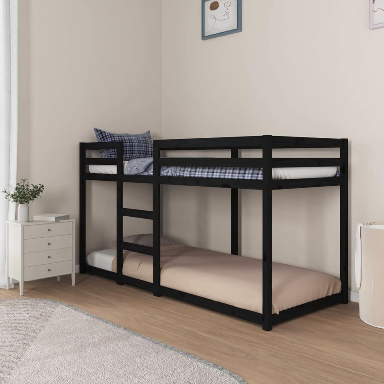Gecheer Bunk Bed Frame Single Bunk Bed Double Sleeper Beds for Adult and Children Black 80×200 cm Solid Wood Pine Beds & Accessories