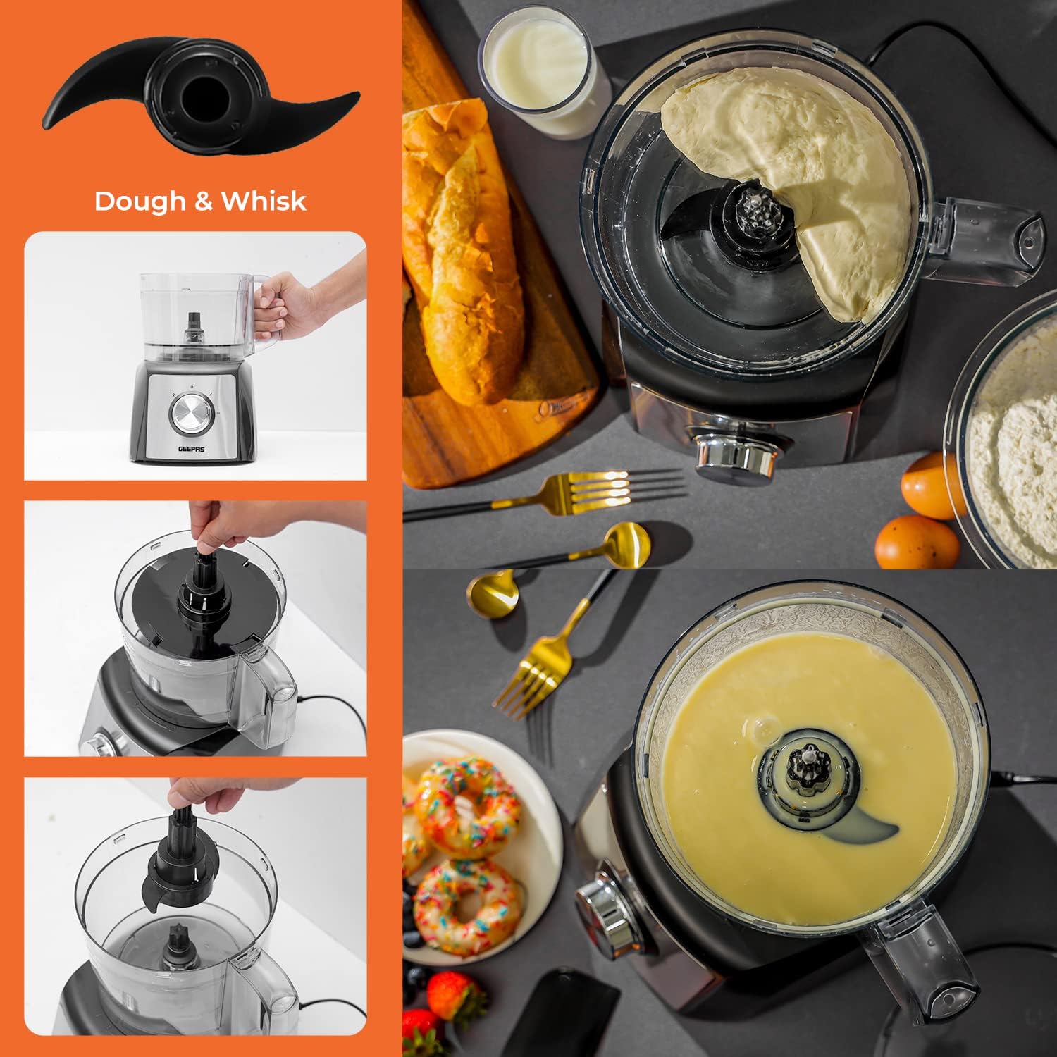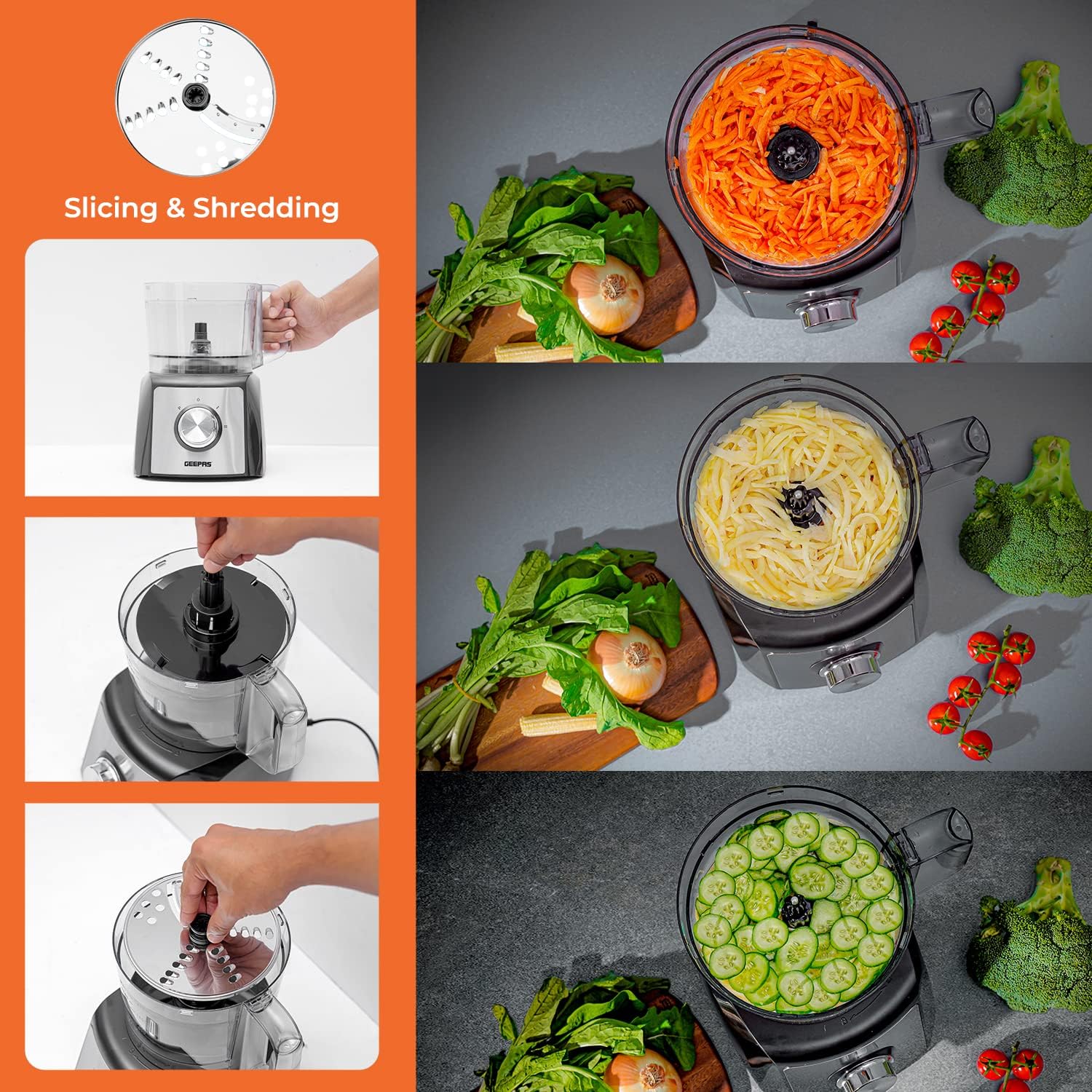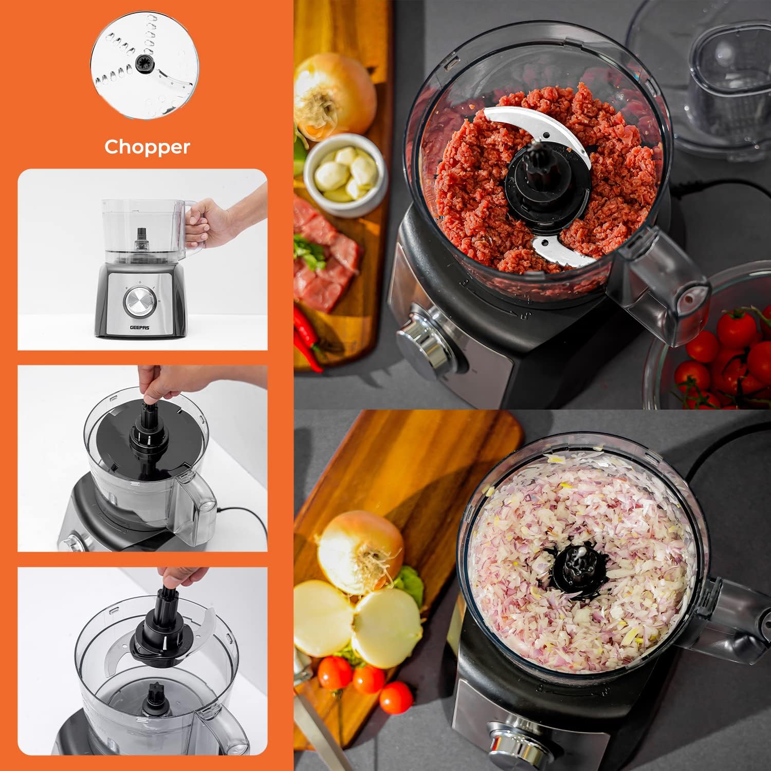 Geepas 1200W Compact Food Processor | Multifunctional Electric Food Mixer with Chopper Knead Dough Shredder Slicing Grating & Emulsifying disc, 2 Speed with Pulse | 1.5L Mixing Bowl | 2 Years Warranty