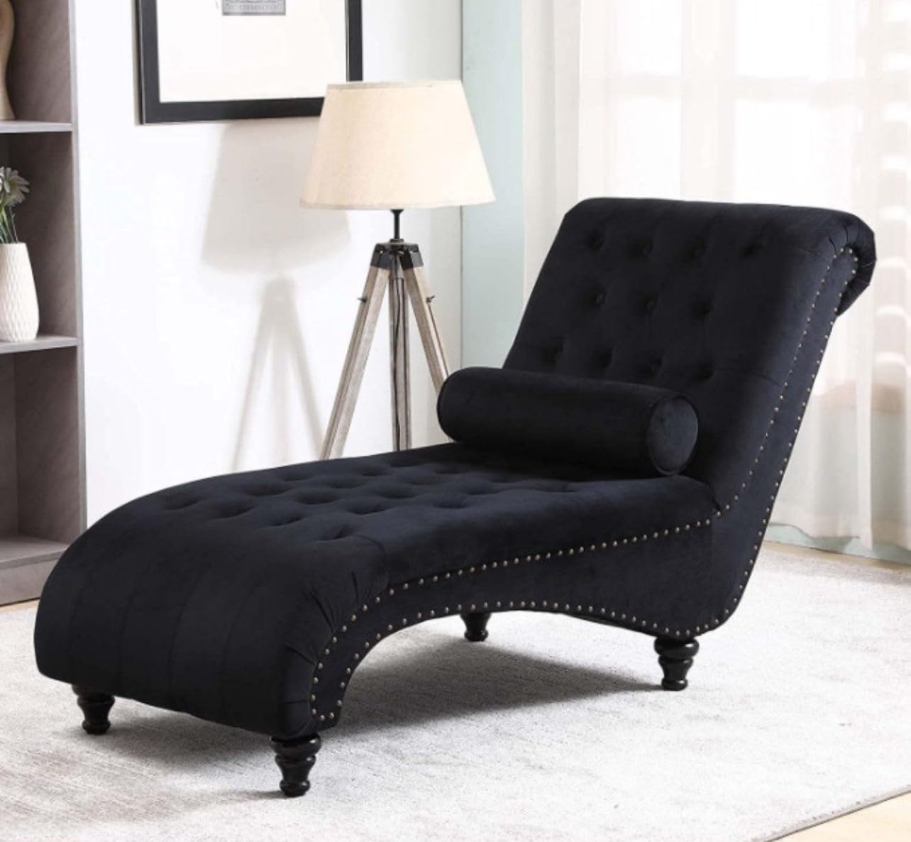 Generic Ark Future Chesterfield Velvet Tufted Fabric Chaise Lounge – Home Elegance for Living Room Fancy Chair, Comfortable and Luxury, Upholstered Chairs (Black), 08001-125