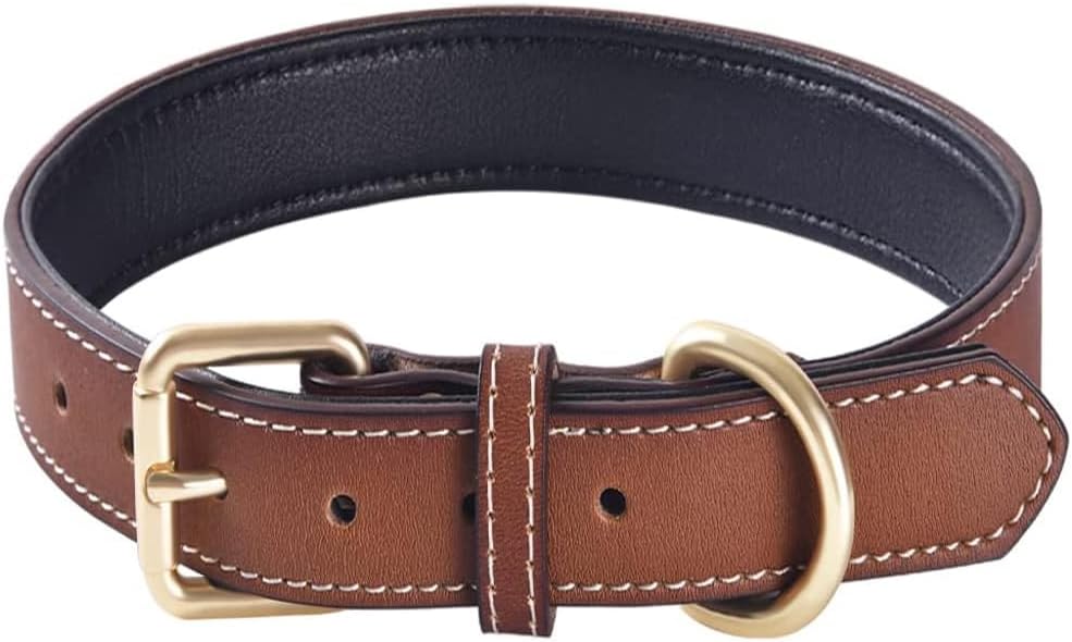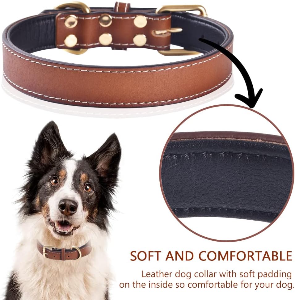 Genuine Leather Padded Dog Collar Comfortable Strong Soft Collars Best for Small Medium and Large Breed Dogs (Brown)(S)