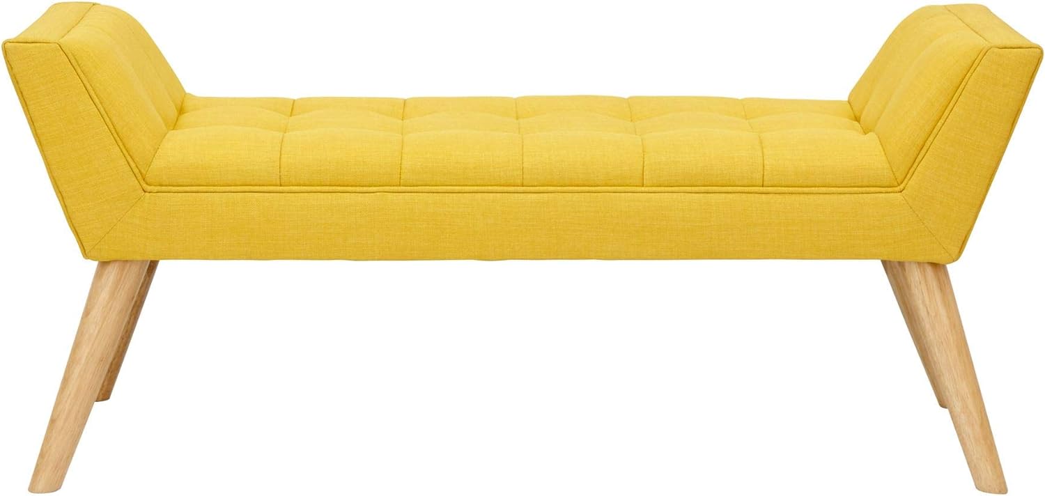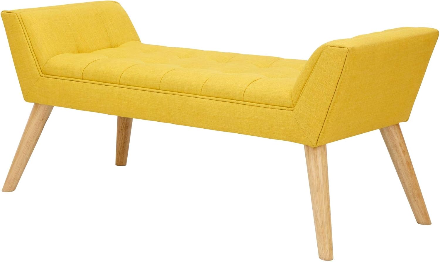 GFW Milan Upholstered Storage Bench, Window Seat With A Padded Stool Seat With Accent Solid Wood Legs, Suitable for Living Room Bedroom Hallway Or Dining Room Mustard Yellow H-51cm x W-118cm x D-43cm