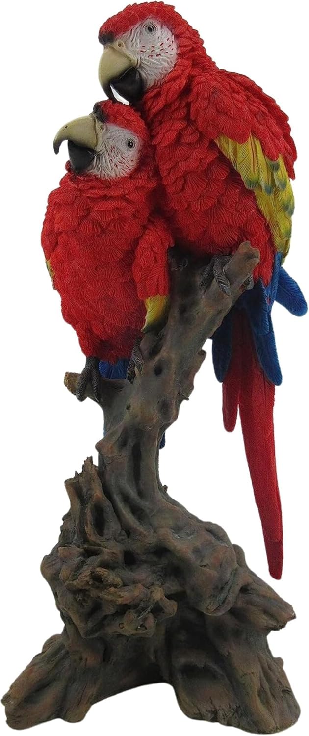 TURN YOUR OUTDOOR SPACE INTO A TROPICAL ESCAPE – Add a touch of paradise to your surroundings with our lifelike decorative parrot duo. These charming resin parrots stand as a testament to both artistry and durability, perfect for your patio, lawn, or yard.