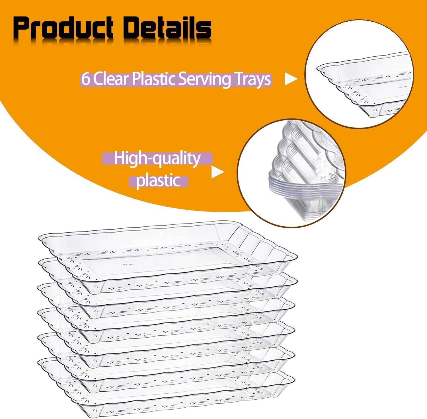 Gikisla Plastic Serving Platters Set of 6, Large Clear Plastic Serving Trays, Rectangle Reusable Platter Perfect for Christmas Parties Food Wedding Buffet
