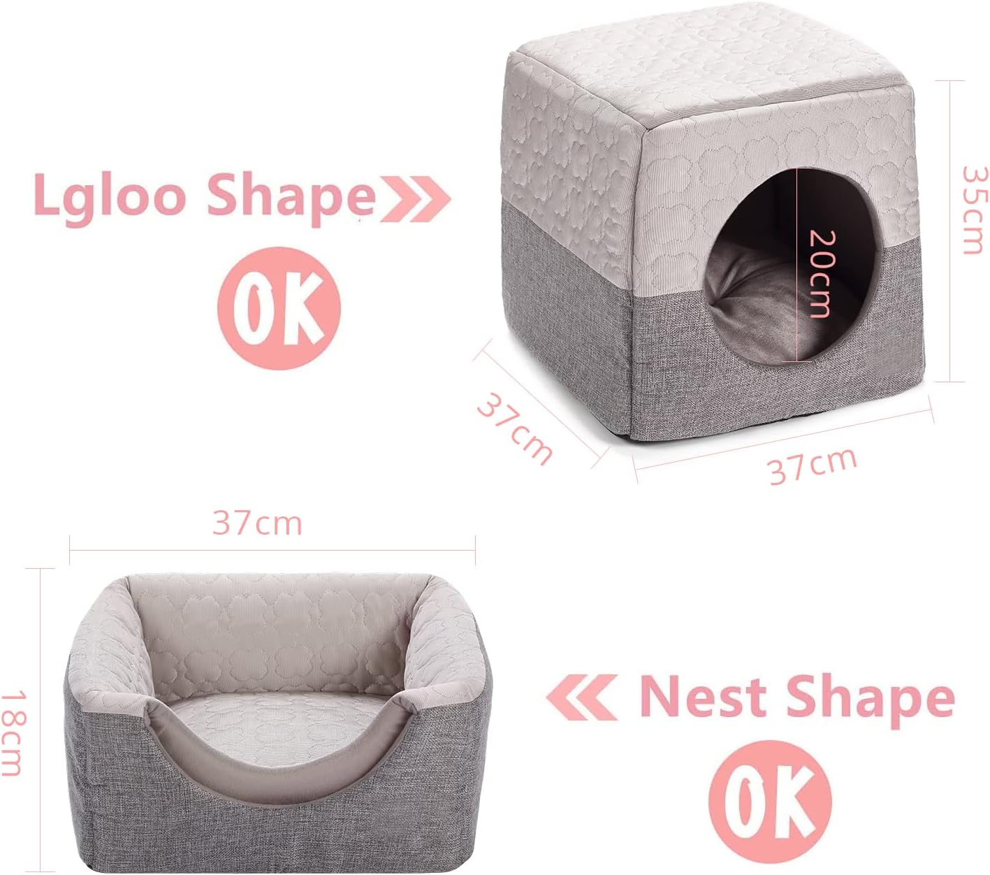 GIOPACO Cat Cosy Cube Lgloo Bed,37x37x35cm 3-in-1 Foldable Cat Dog Soft Sofa Cave Bed,Cool and Warm Tent Cave Microfiber Bed House with Washable Cushion Pillow for Cats Small Dogs Puppy Pets (Grey)