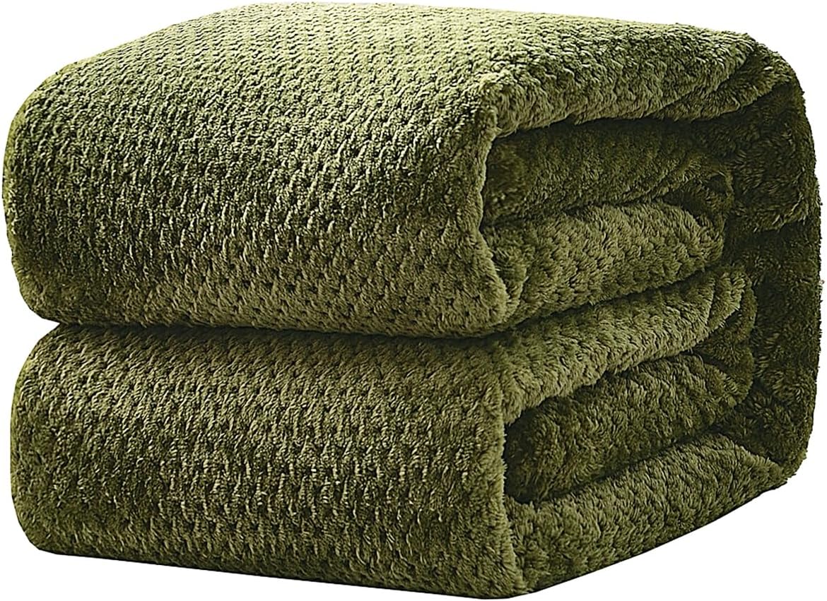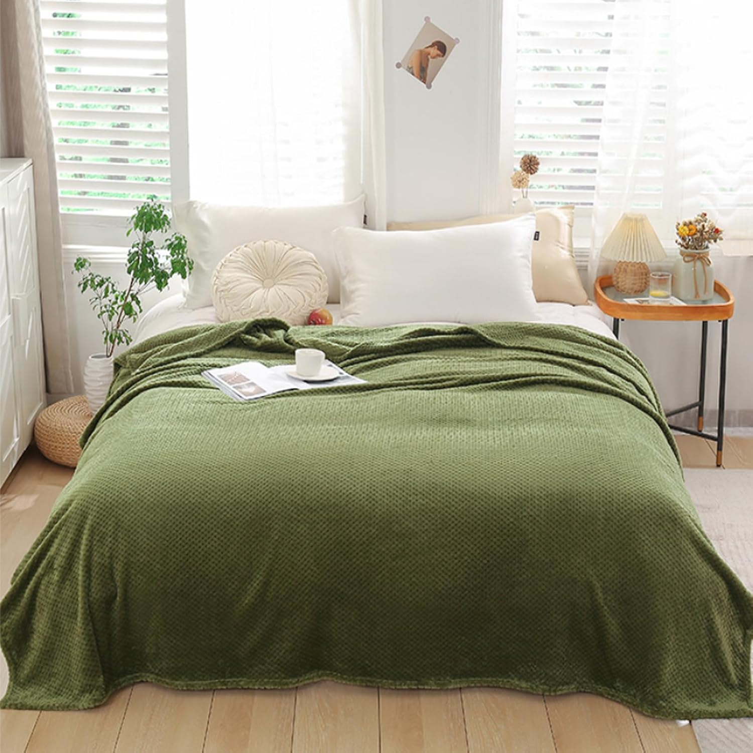GJWLaie Throws Blanket for Bed Sofa Couch Flannel Blanket 150 * 200 Super Soft Throws For Daily Office Travel Automobile Use Warm Cozy Plush and Lightweight Olive Green Blanket