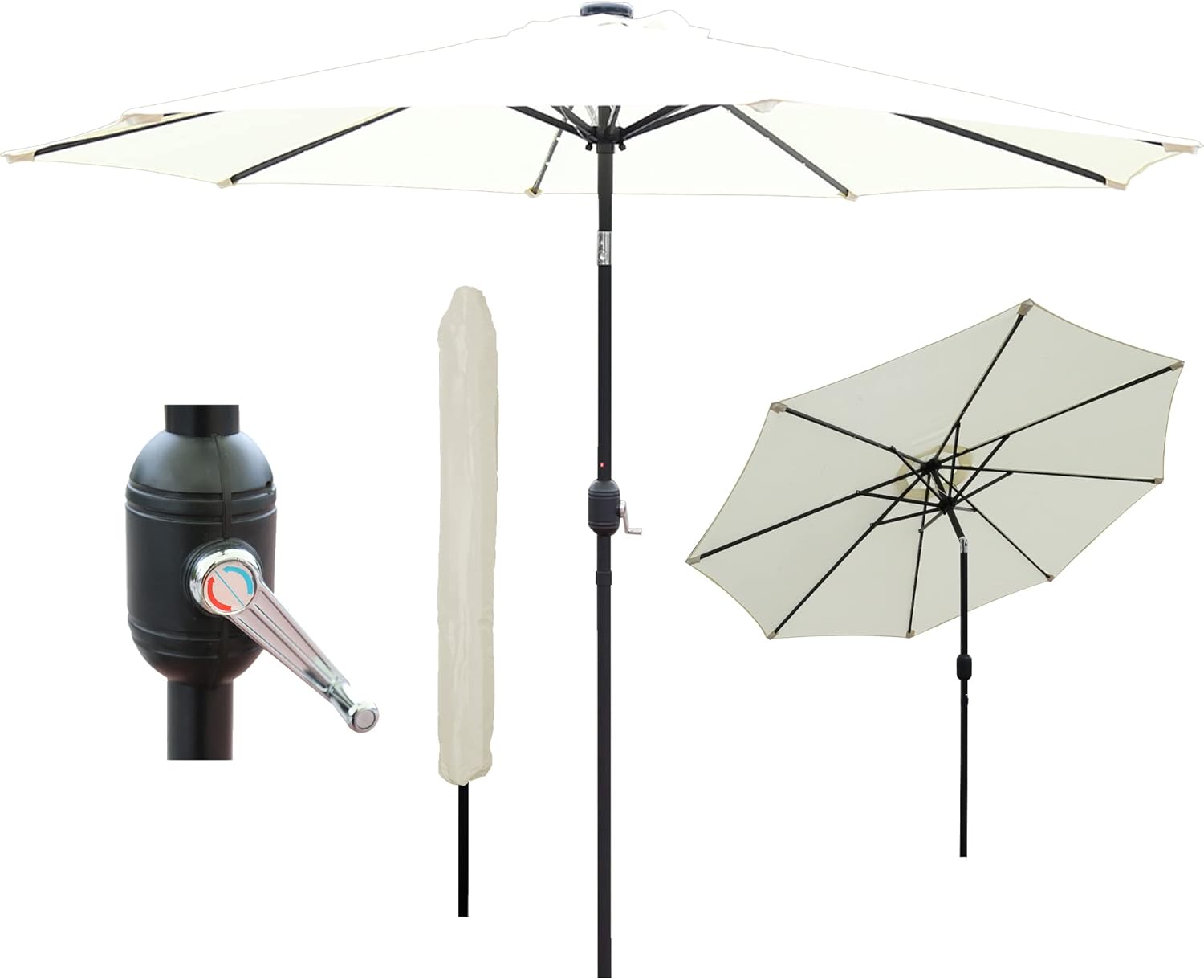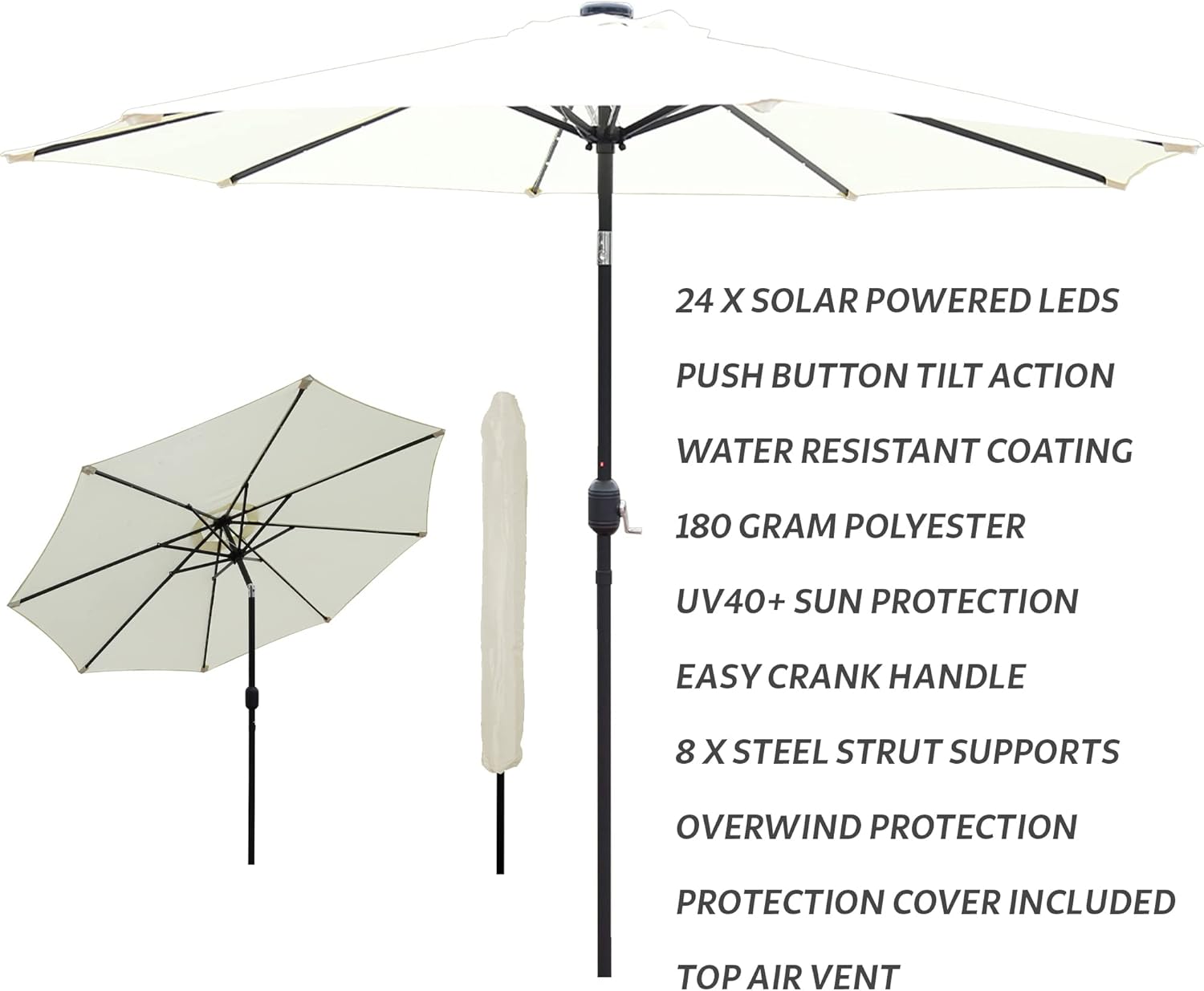 GlamHaus Garden Parasol Solar LED 2.7M,Tilting Table Umbrella with Crank Handle, Protection UV40, Includes Parasol Cover, Gardens and Patios – Sand, Grey, Cream, Green, Khaki