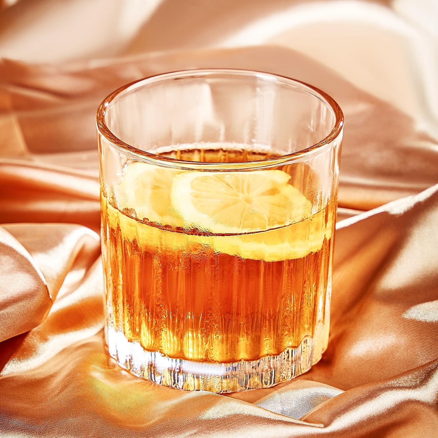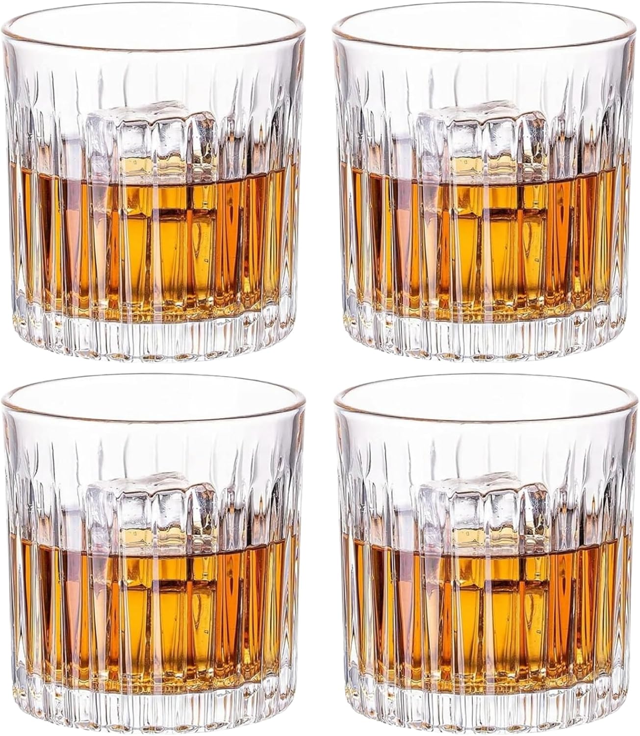 GLASKEY Whiskey Glasses Set of 4, 300ml Lead-Free Crystal Whiskey Tumbler, Dishwasher Safe Rocks Glass Rum Cocktail Drinkware Cut Glass Wine Glasses