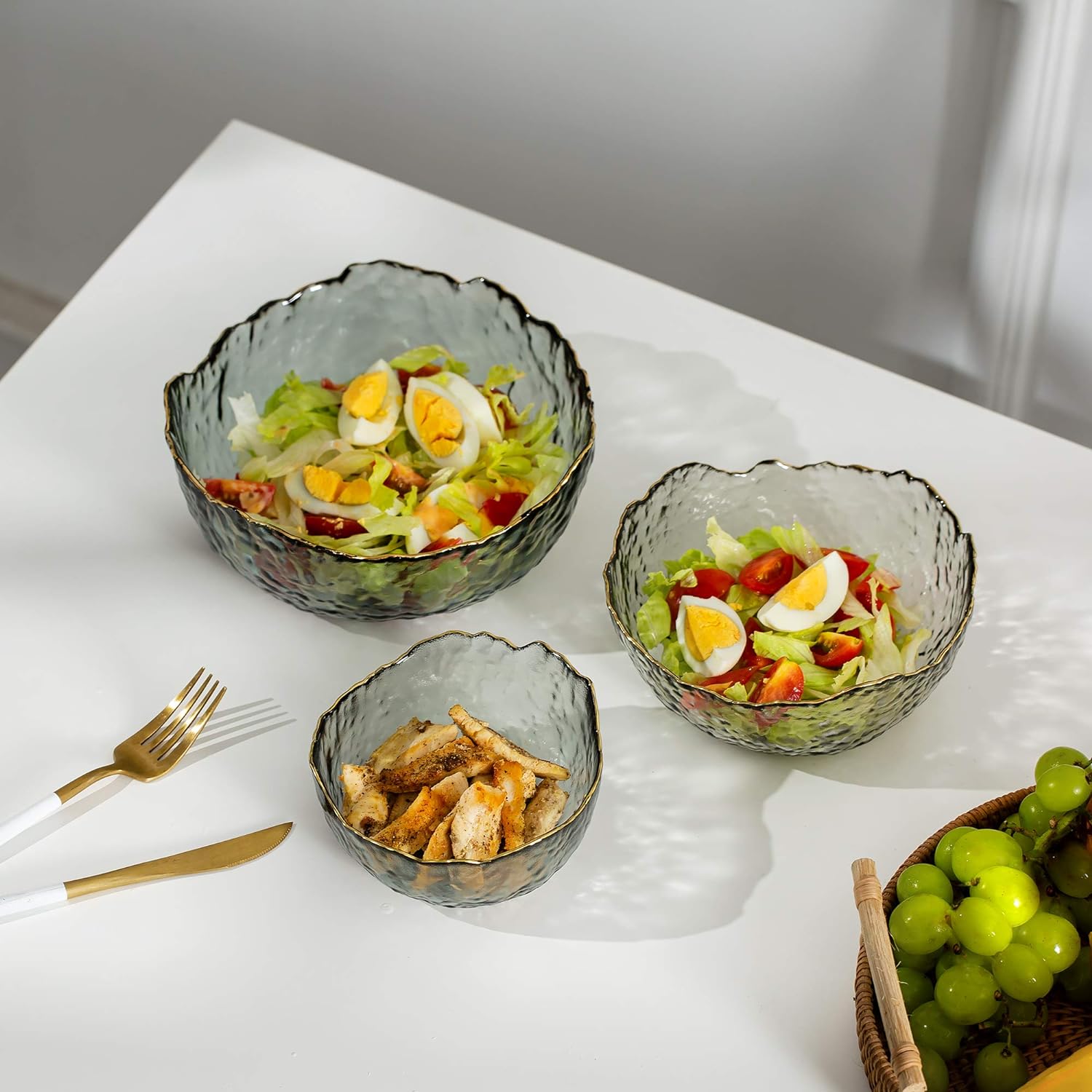 Glass Serving Bowls Set of 3 Smoky Grey Stackable Salad Bowls Deep Trifle Bowl for Soup Fruit Dessert Pasta Curry Popcorn Cereal Suit for Mixing Dining Party Catering