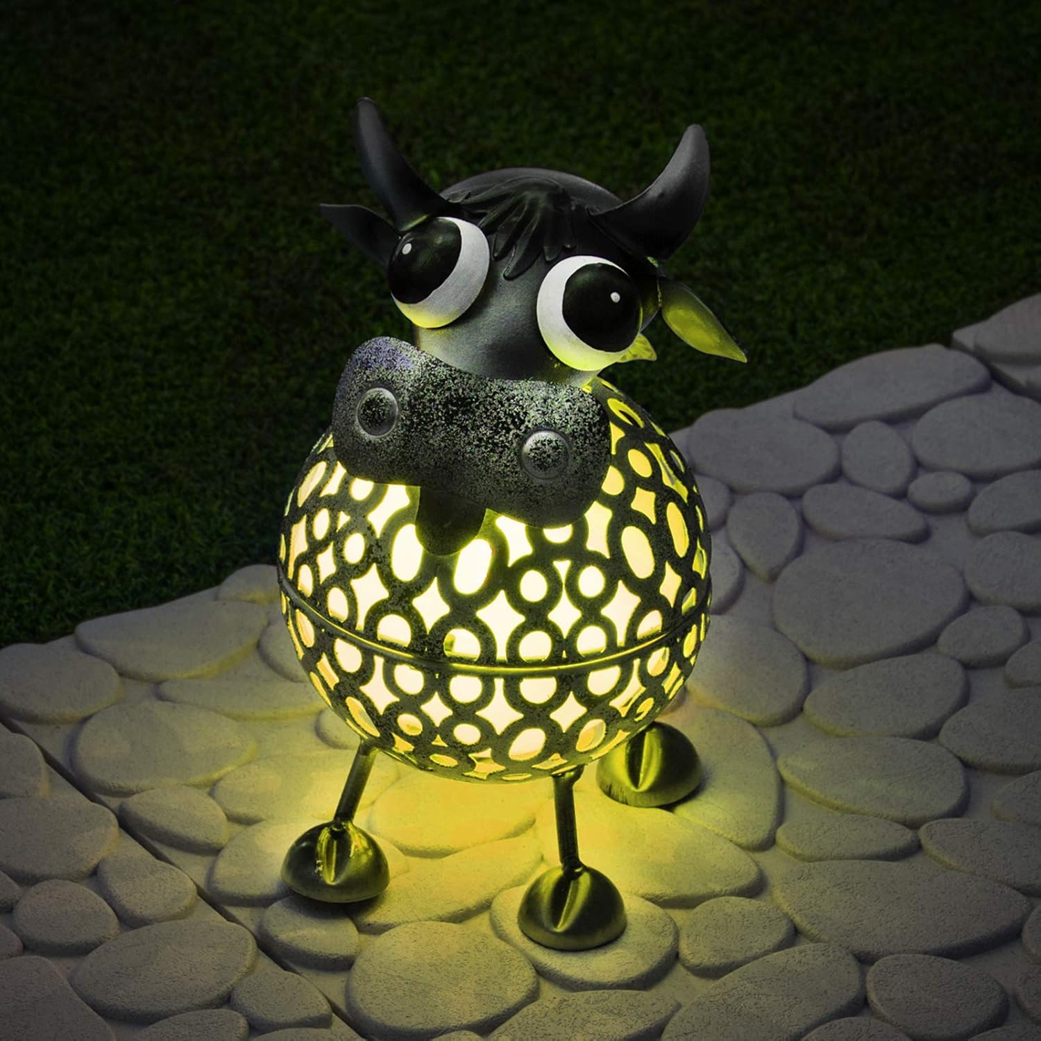 𝐌𝐄𝐓𝐀𝐋 𝐂𝐎𝐍𝐒𝐓𝐑𝐔𝐂𝐓𝐈𝐎𝐍: This solar garden ornament is made from durable metal that ensures longevity and durability in various weather conditions. The robust construction makes it suitable for outdoor use. The cow-shaped garden ornaments are compact, making it a space-efficient decoration.