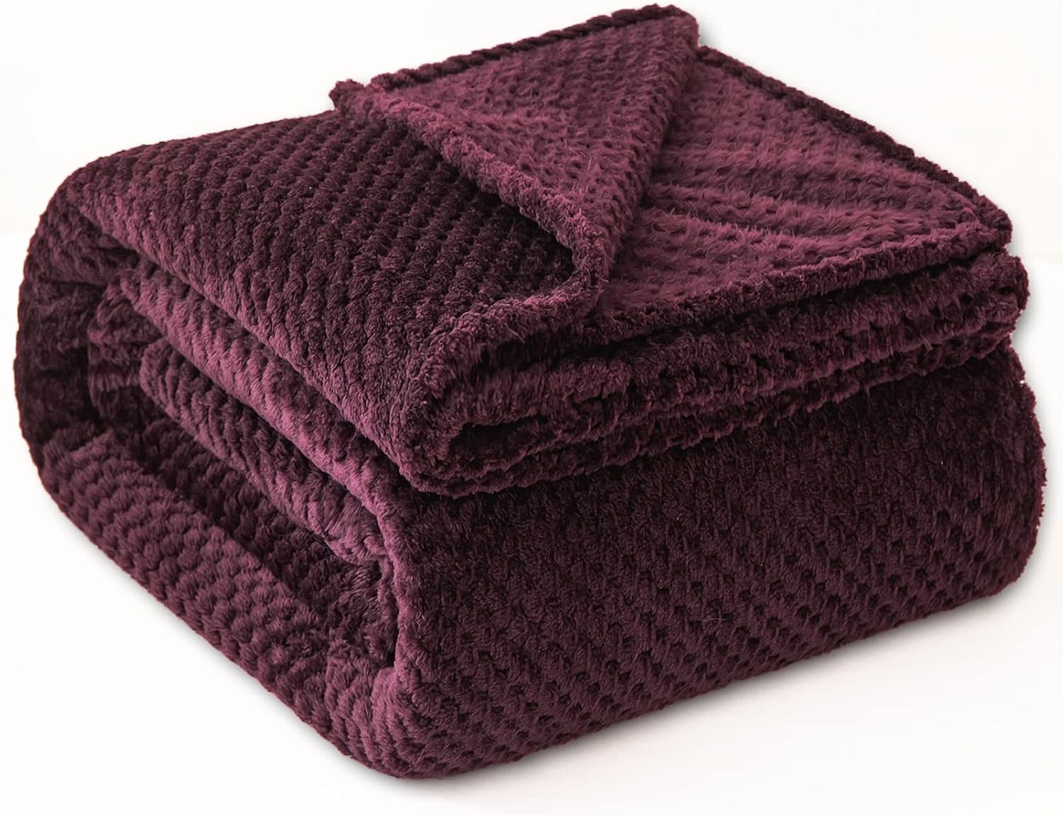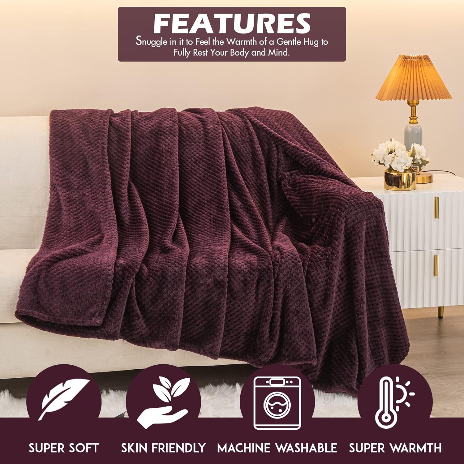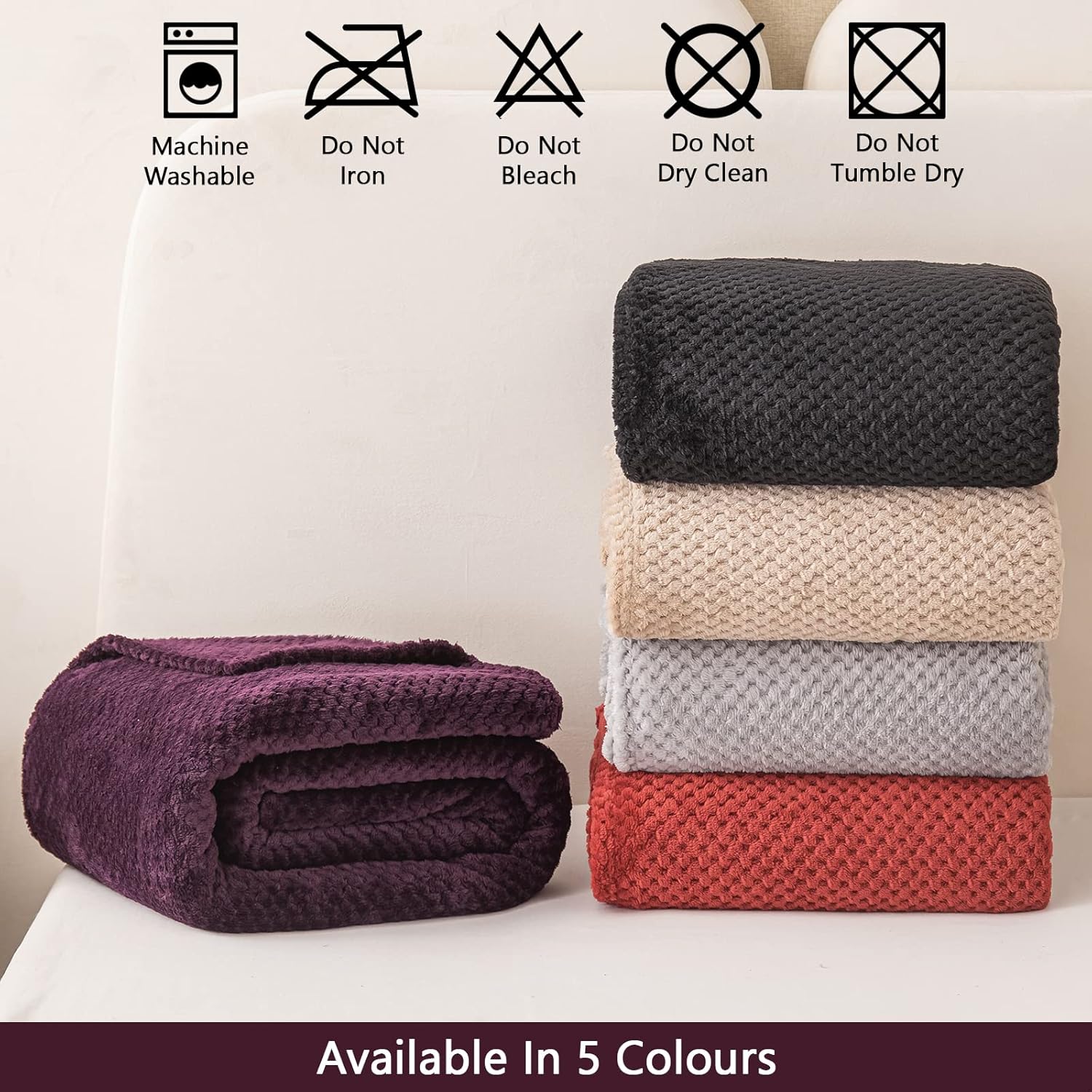GLS Home Luxury Throw Blanket King Size Waffle Honey Comb Throw Blanket Super Soft Lightweight Warm Cosy Fleece Throws for Couch Bedspread Travel Sofa Throw Blanket (Aubergine, King – 200x240cm)