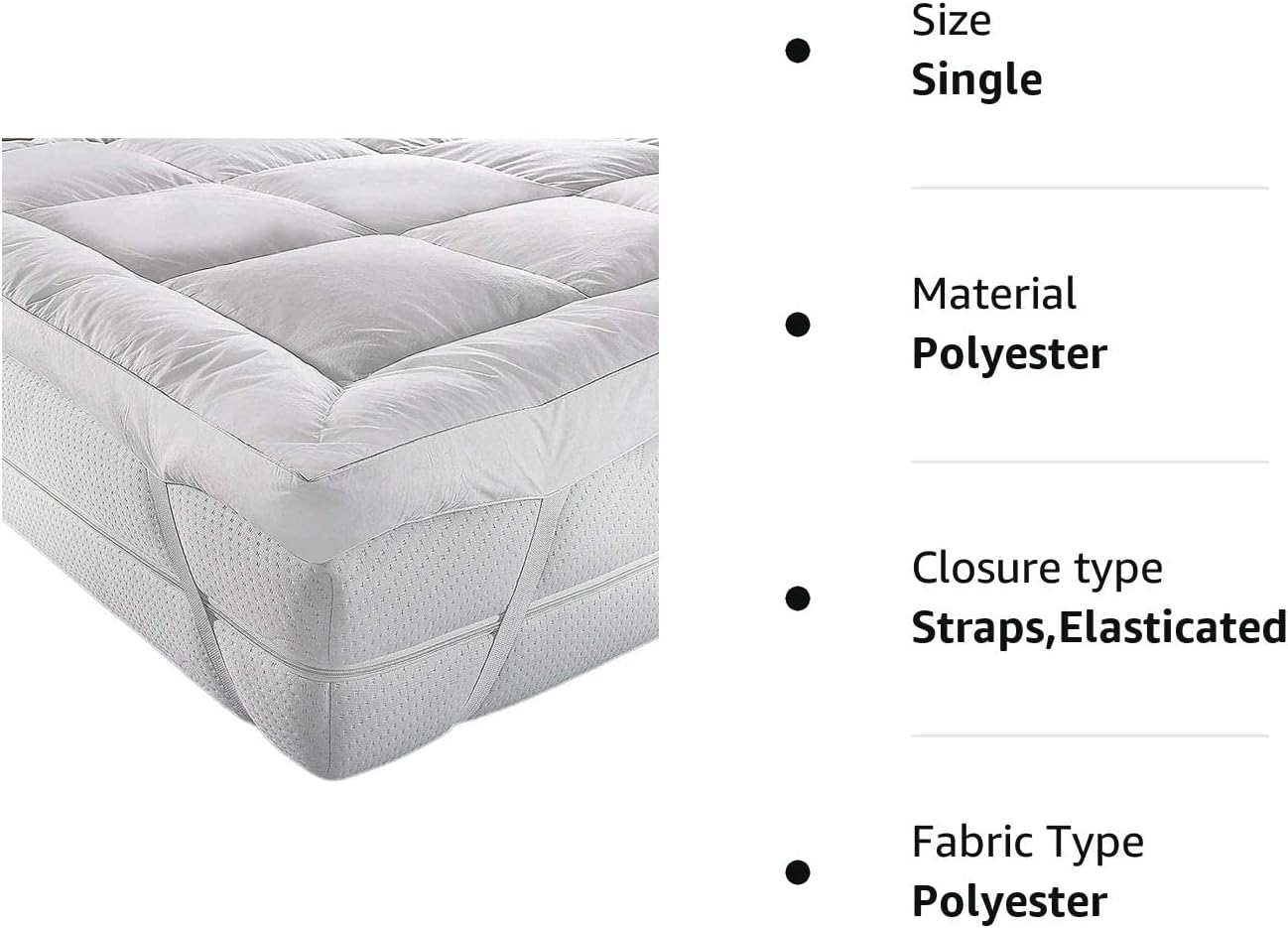 Luxurious Sleeping Comfort Throughout The Night with our Single Mattress topper. There are Elasticated Corner straps on our single matress topper to easily fit the Deep Mattress as well, Soft and comfortable bouncy “microlite” microfibre.