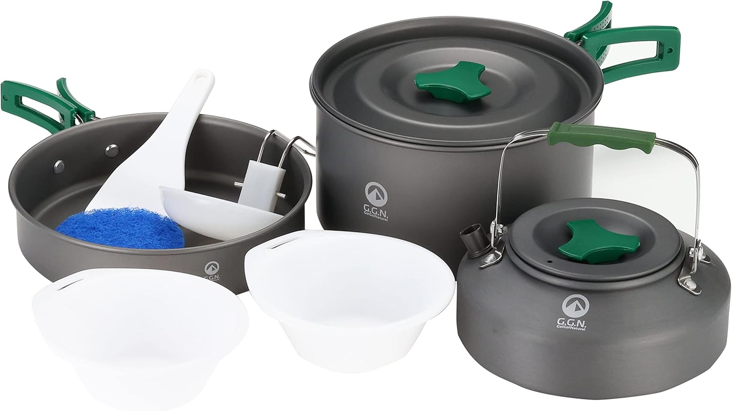 BEST ALL IN ONE: The camping cookware set is equipped with all the kitchen necessities allowing you to enjoy cooking anywhere you go with family and friends.