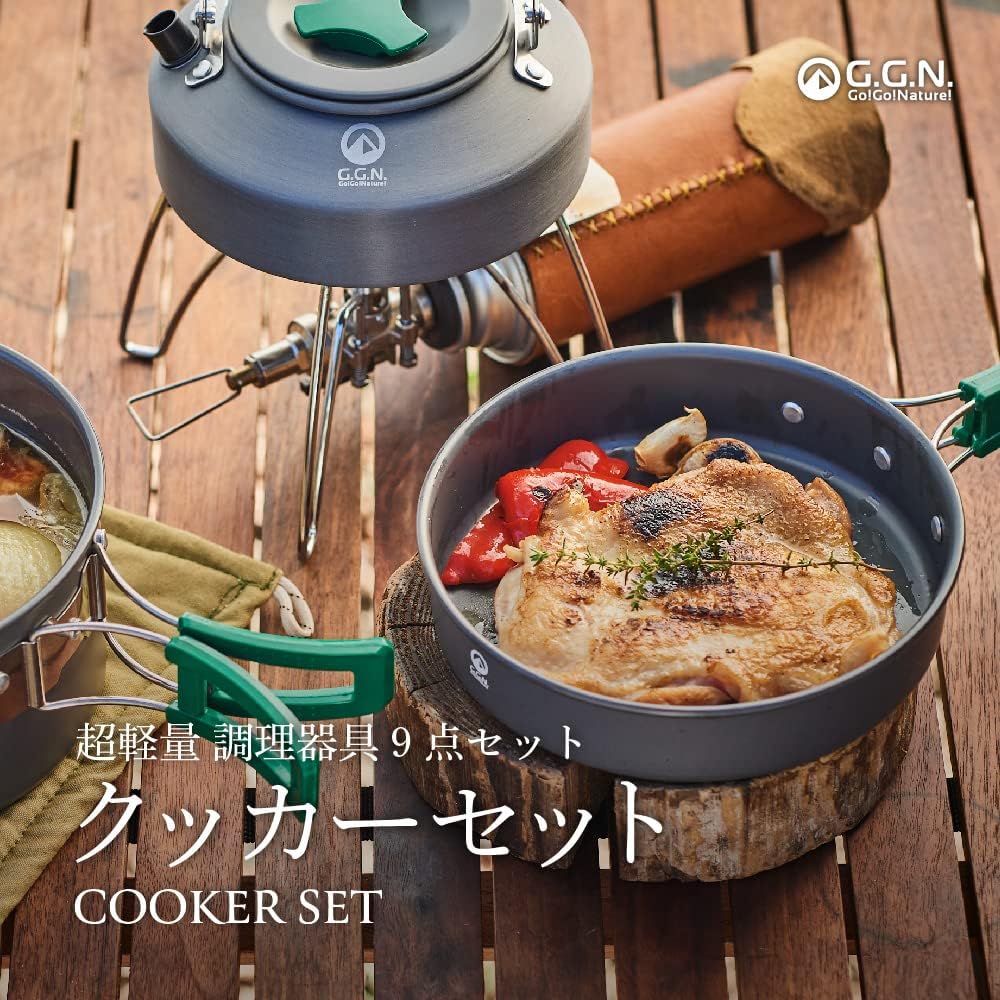 Go! Go! Nature! – Camping Cookware 9-Piece Set, Grey & Green