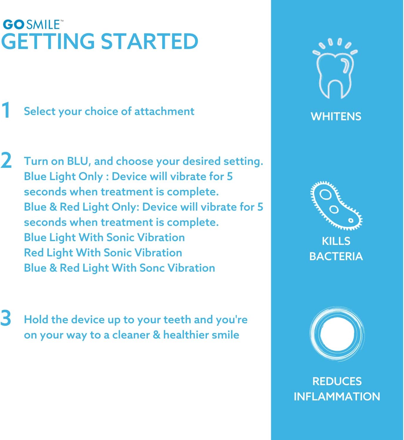 Avoid Residue Build Up – It is recommended that you replace your brush head every 3 months to make sure your smile continues to improve, because residue builds up on your toothbrush head over time. Please note that this is a set of accessories attachments for GO SMILE BLU sonic toothbrushes.