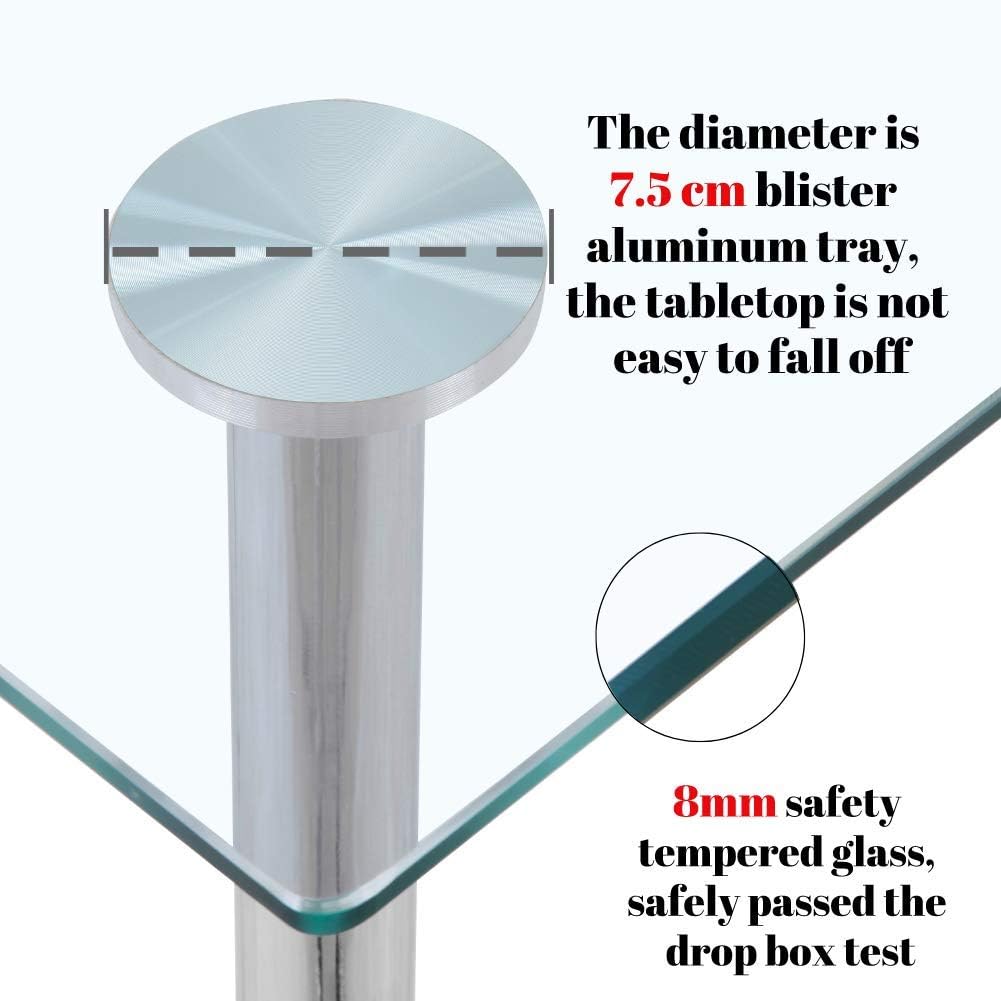 🌼Tempered Glass Dining Table: 8mm tempered glass dining table and 4 velvet chairs with chrome legs, a damp cloth is all you need to be clean.
