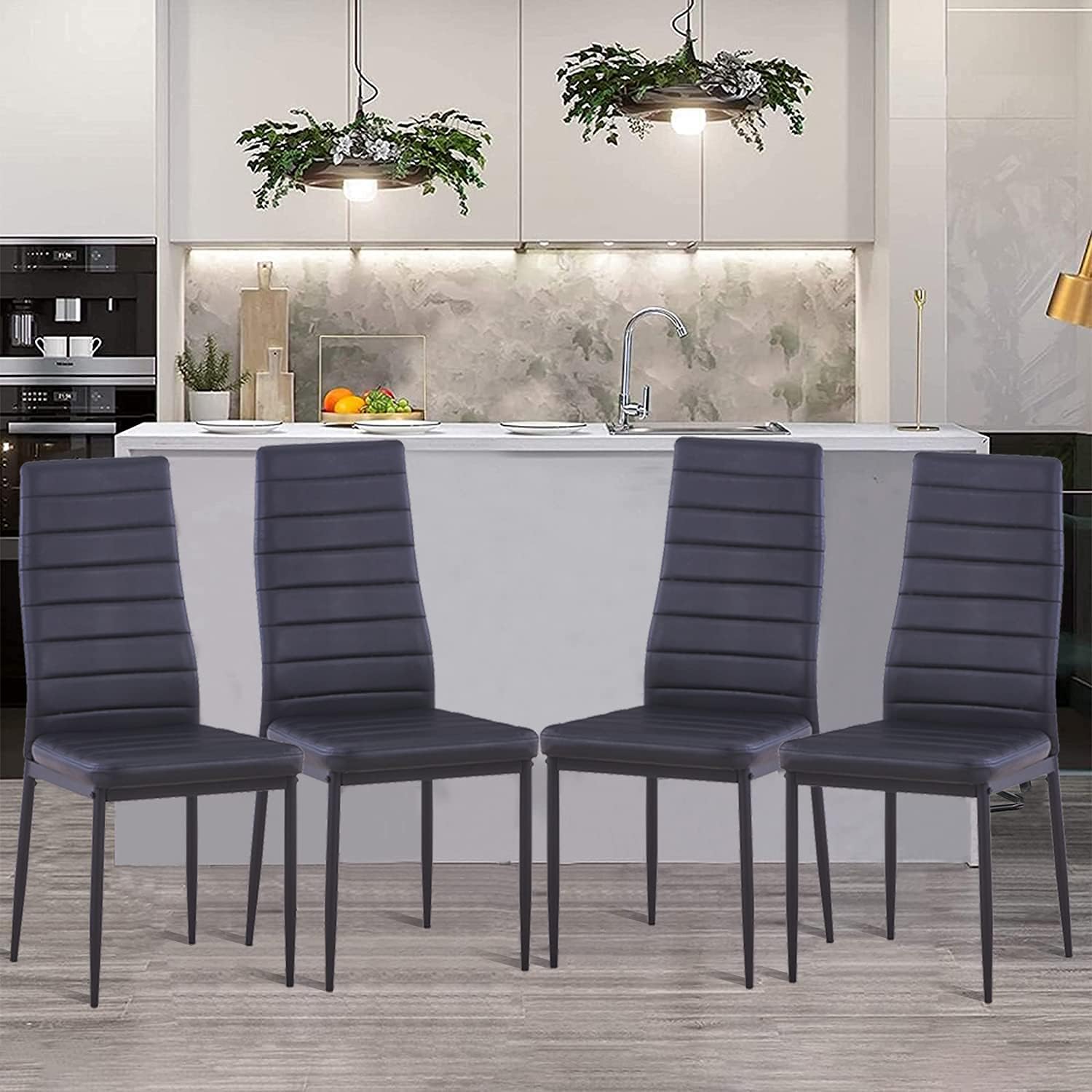 Dining Chairs Set of 4: Black upholstered legather dining chairs seat with the solid metal frame offers durability that you can enjoy for many years. The backrest of chairs are extra padded cushioned for extra comfort