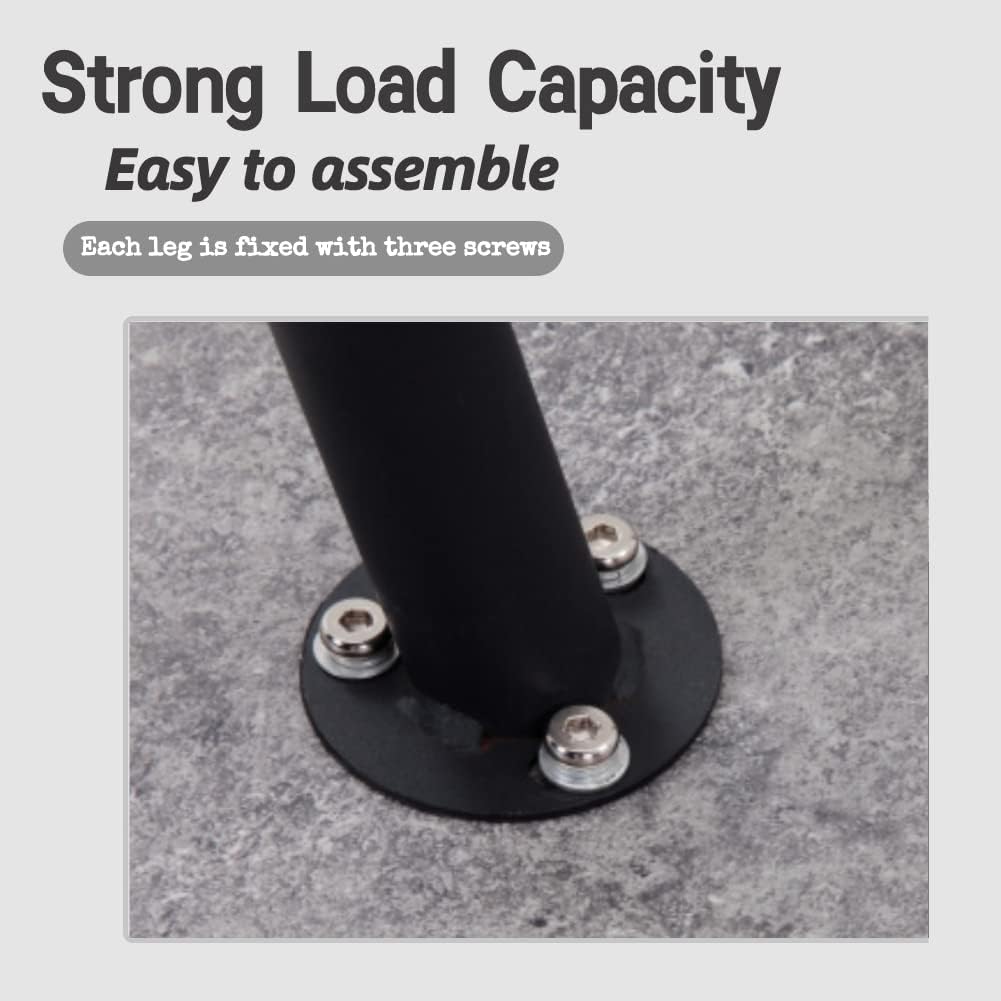 The table legs are made of black metal legs, 100% sturdy and stable.Non-slip foot pads can also protect floor and carpet.