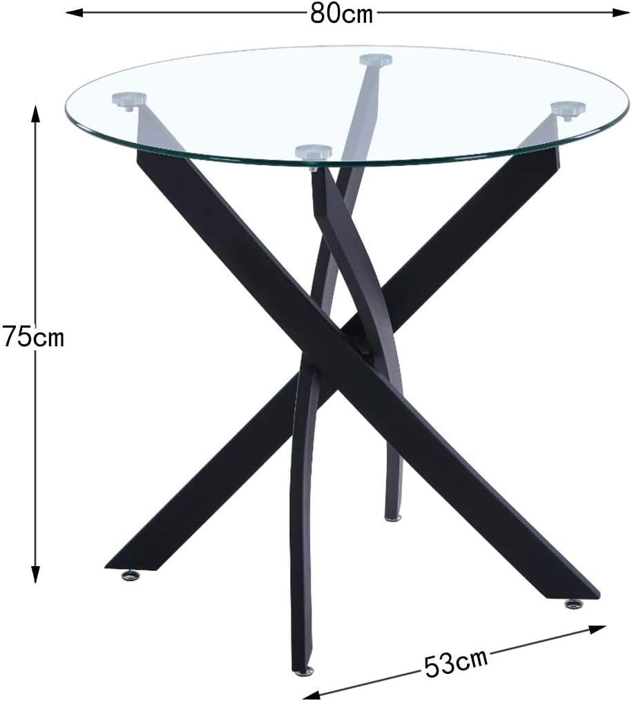 GOLDFAN Round Glass Dining Table Modern Design 80cm Kitchen Table With Chromed Legs For Dining Room Living Room Office