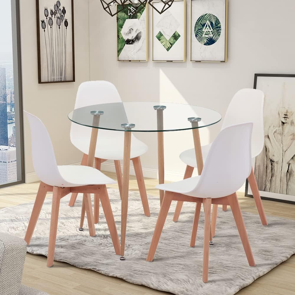 MODERN STYLE: The clear dining table with smooth surface and sturdy metal legs gives you fresh new look decorating in dining Room, It’s extremely appropriate for entertaining everyday dinners for FOUR Persons