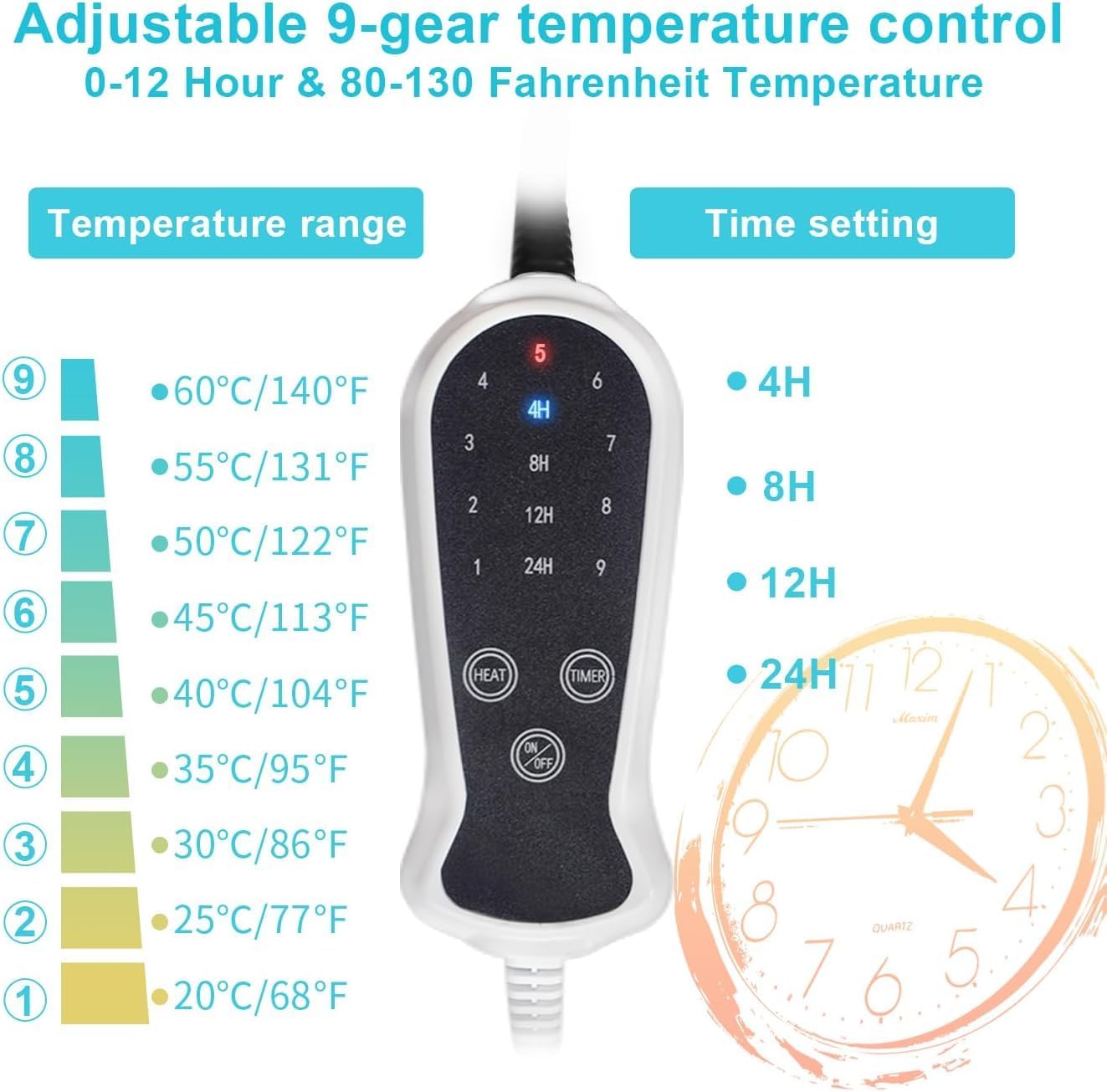 🐱【Intelligent Thermostat】You can control the temperature to meet your pet’s needs over a range of temperature settings from 27 ° C to 54 ° C (80 ° F to 136 ° F).Time setting has 4H, 8H, 12H, 24H.(Maximum on time is 24 hours.)