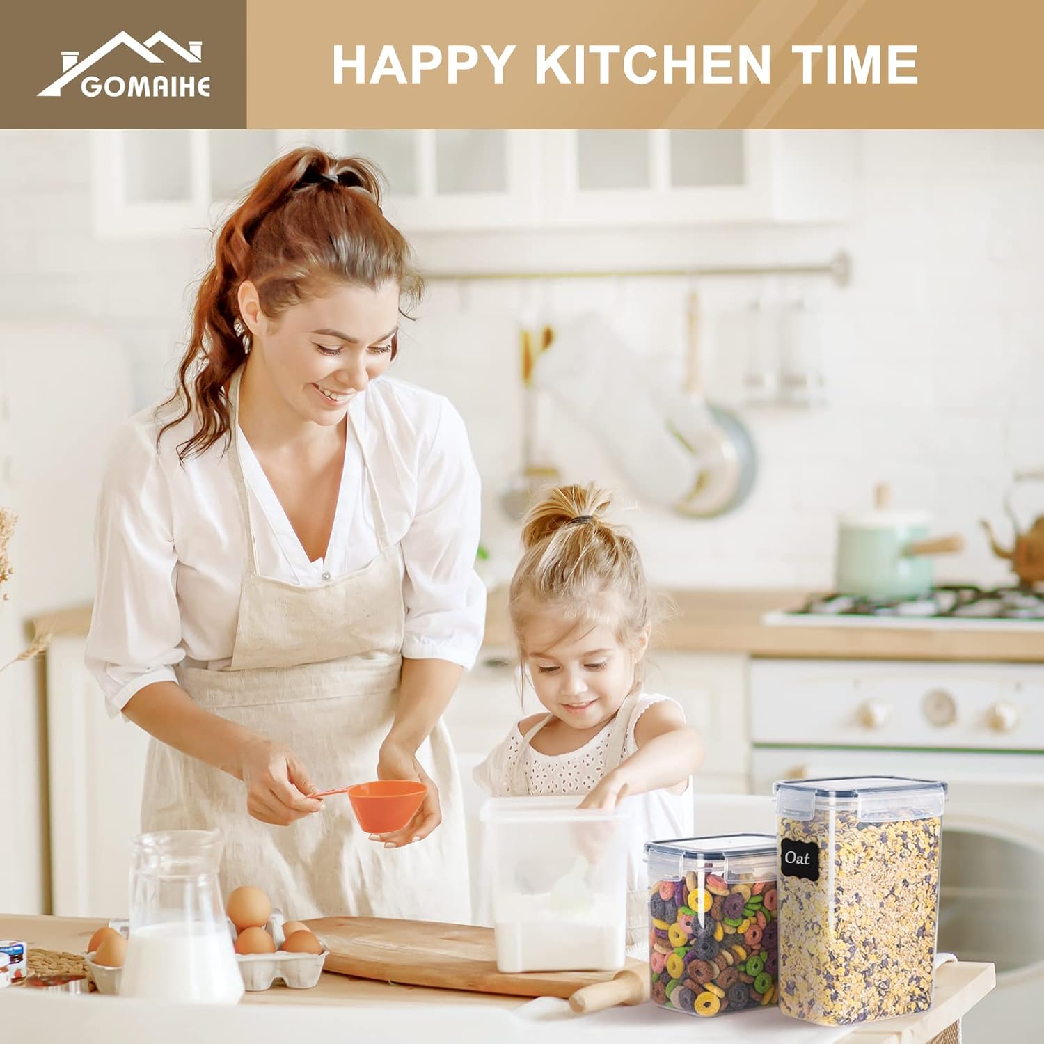 GoMaihe Cereal Storage Containers Set of 8, Plastic Airtight Food Storage Containers with Lids, Storage Jars for Storing Pasta, Rice, Rlour, Dog, Cat, Pet Food, Cereal Dispenser Kitchen Organiser