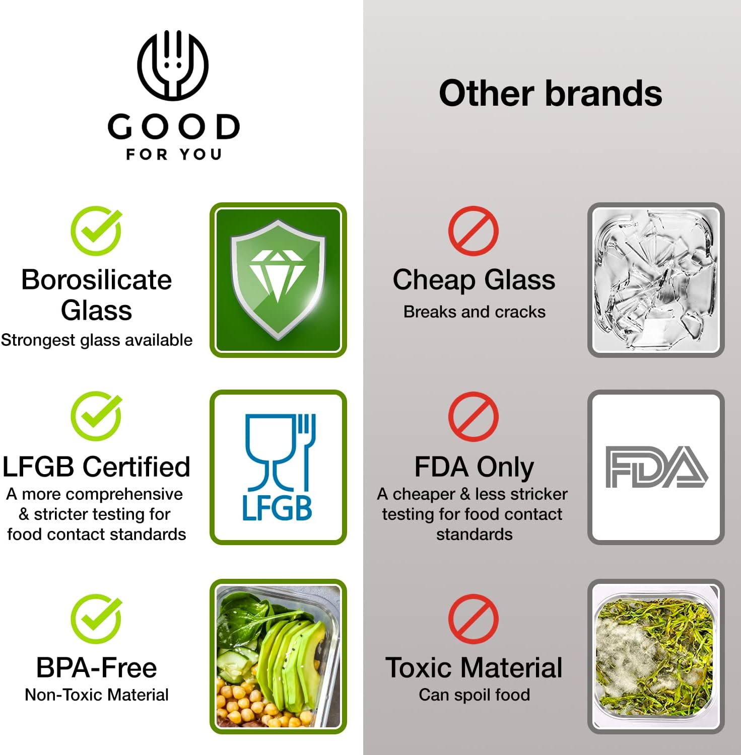 GOOD FOR YOU Glass Meal Prep Containers – [5 Pack] Glass containers with lids – Glass Storage containers with lids – Meal prep Container with lids – Glass Food containers with lids