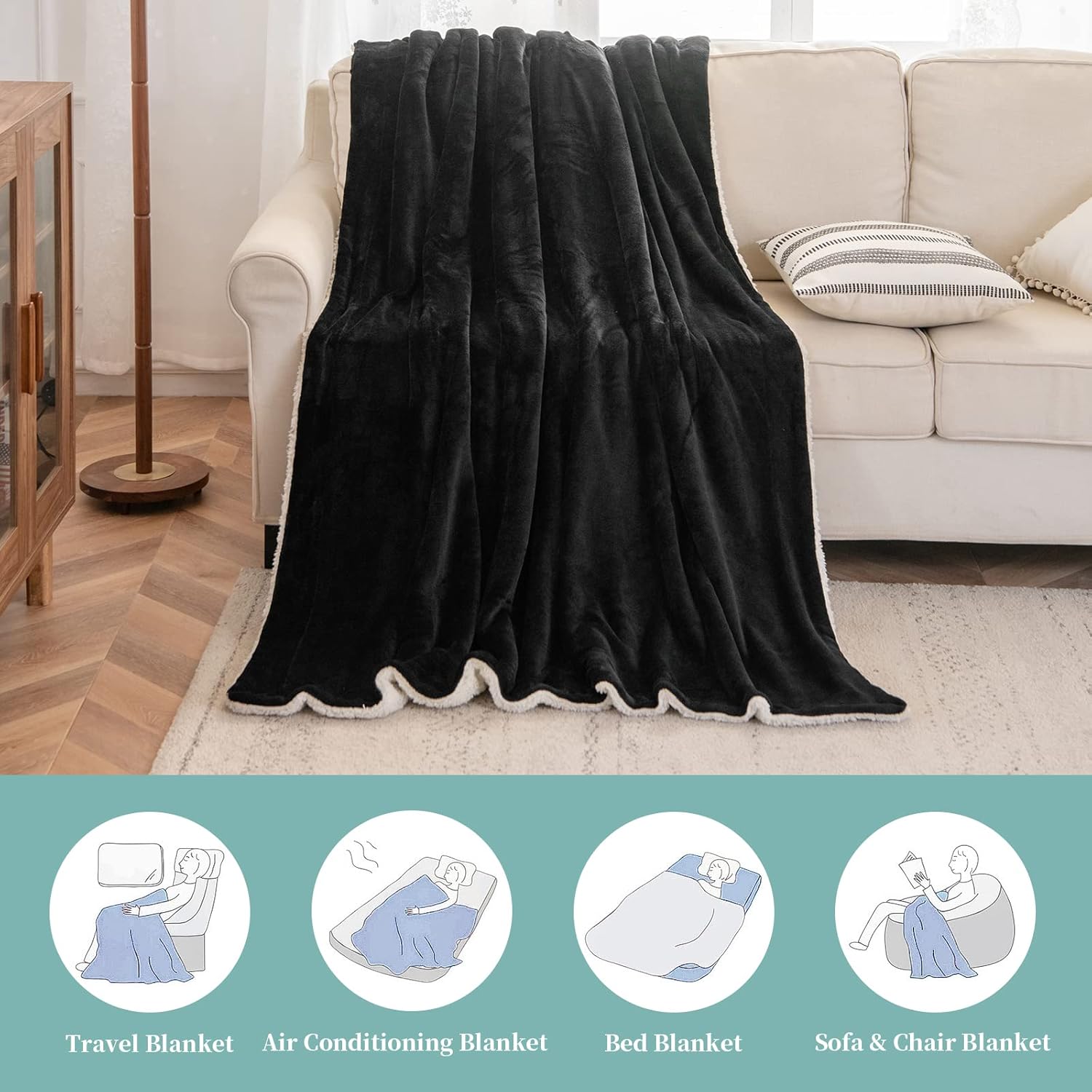 Good Nite Blanket 130x150cm Reversible Sherpa Fleece Blanket Fluffy Polyester Blanket Soft and Warm Bed Blankets for Home life and Travel (Black,Single)