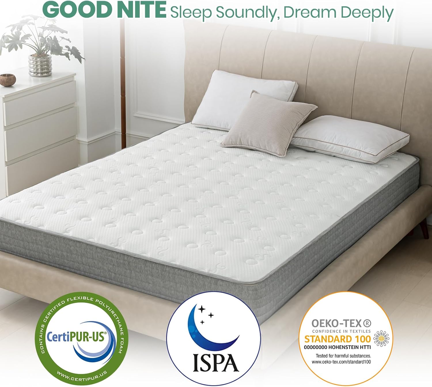 Good Nite Double Mattresses 8 Inch 4FT 6 Hybrid Mattress with Comfort Memory Foam Individually Wrapped Pocket Sprung Double Mattress 4FT6 Medium Firm 7-Zone Orthopaedic Mattress Double 135x190x20cm