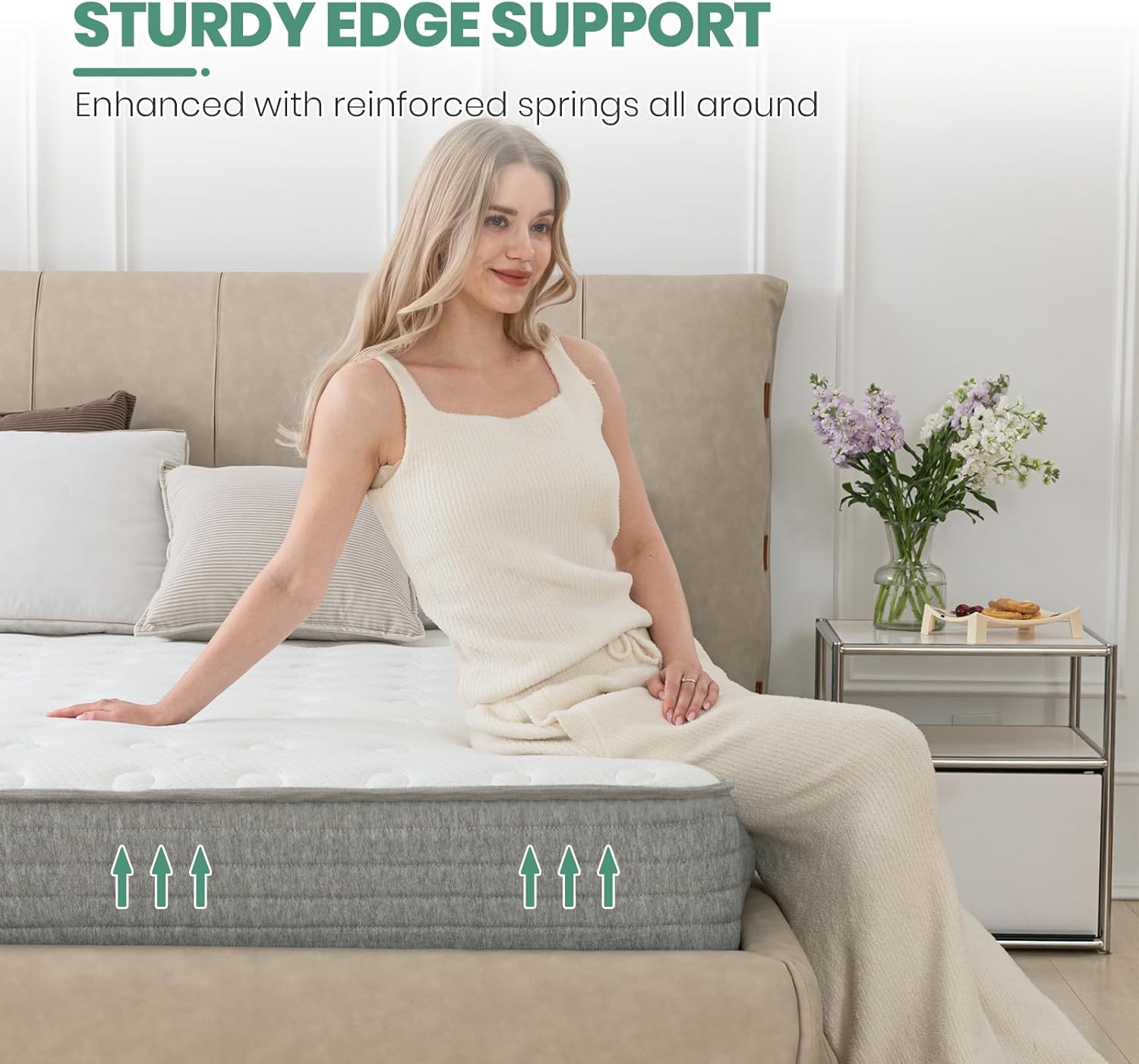 【Memory Foam Pocket Sprung Hybrid Mattress】Composed of individually pocketed springs and high-density memory foam, our hybrid mattress is built to last. Our orthopedic mattress double contours your body for amazing pressure relief. For all sleeper types, stomach, back, side and combo. From CertiPUR-US Certified, so you and your family can sleep safely.