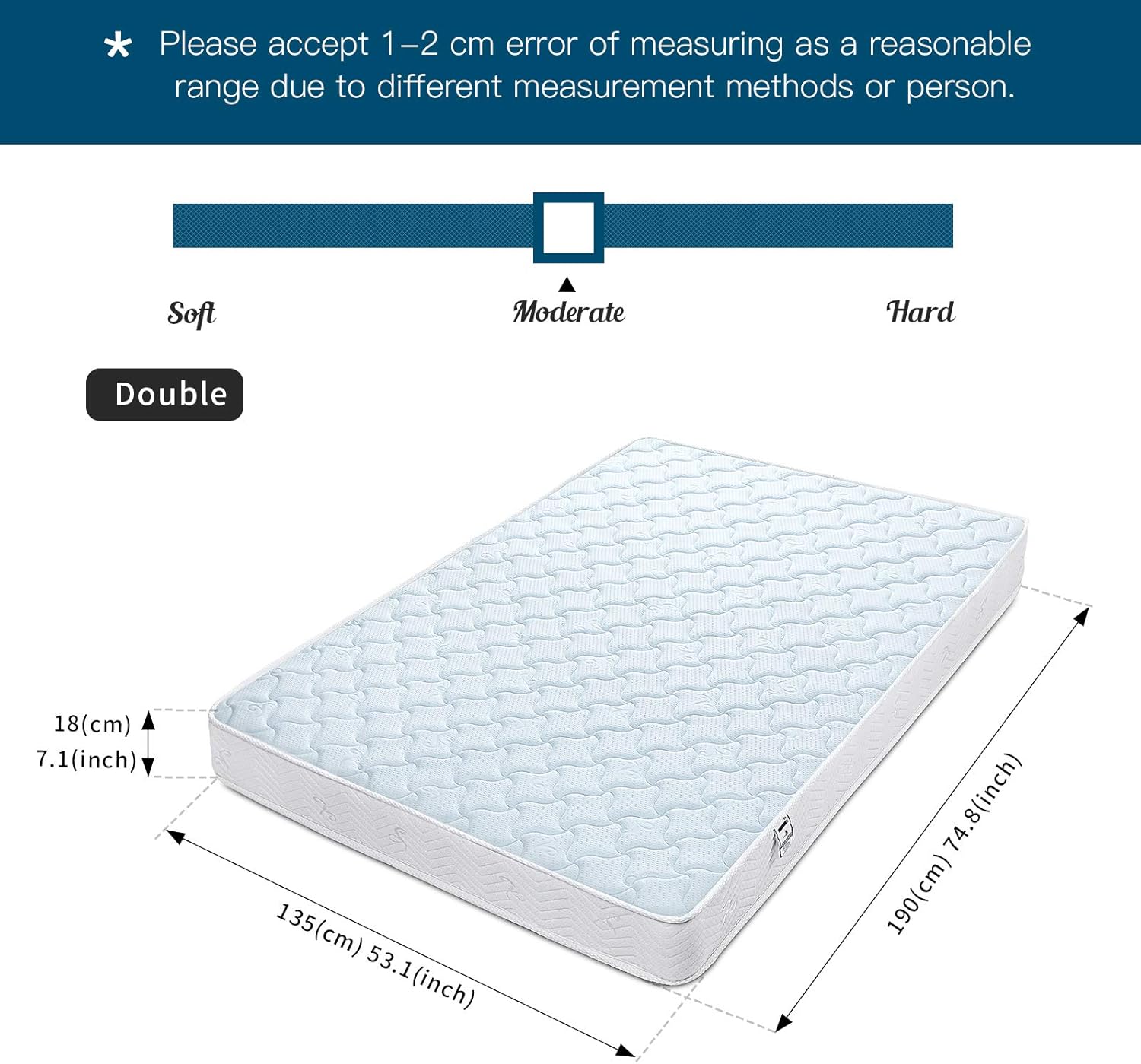Good Nite Double Sprung Mattress 4FT6 with 3 cm Foam Fire Resistant Fabric Medium Hardness 18cm Thick (135 x 190cm)