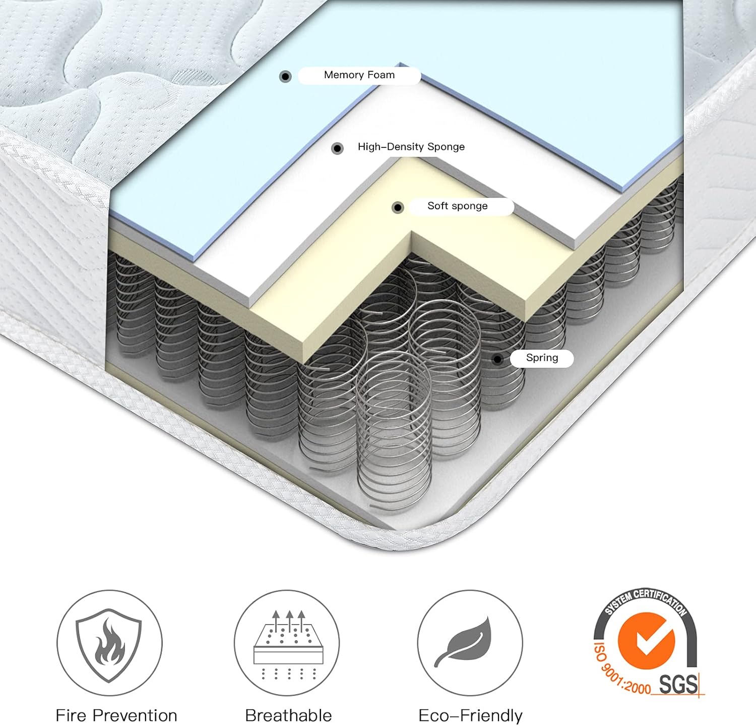 Spring + Memory Foam: Scientifically proven that the spring mattress can be aimed at the spine and directly resist back pain. The second layer of the mattress has five millimeters of memory foam. Memory foam mattresses can improve overall support, reduce pressure points, improve blood circulation and improve sleep quality. Memory foam can respond to body heat and relieve stress, thereby improving sleep efficiency