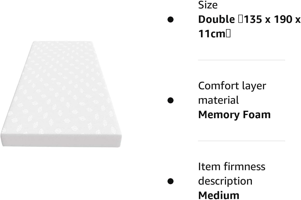 Good Nite Mattress Memory Foam Double Mattresses Soft 4.3 inch Mattress with Breathable Knitted Cover for Bed 135 x 190 x 11cm