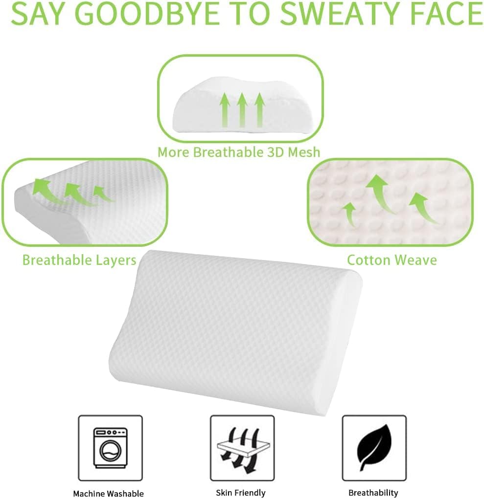 【Soft and Comfortable Material】 The inner pillow core uses prime soft memory foam as the raw material of the neck pillows, which is soft and has no peculiar smell, good air permeability, and does not deform or collapse after a long sleep. The outer pillow cover is made of 100% polyester fiber, which can be washed with water, and the pillow protectors surface is designed with multiple vents to refresh and dehumidification.