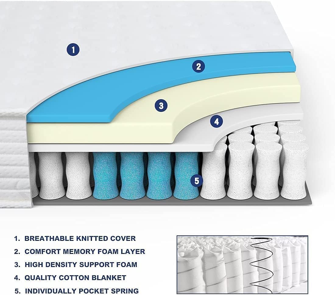 【Individual pocket springs】Good Nite The orthopedic mattress with individually pocket spring is an orthopedic design that provides good support for the head, shoulders, waist, hips and legs. Each pocket spring works independently, when your sleeping partner walks around at night, your sleep will not be disturbed