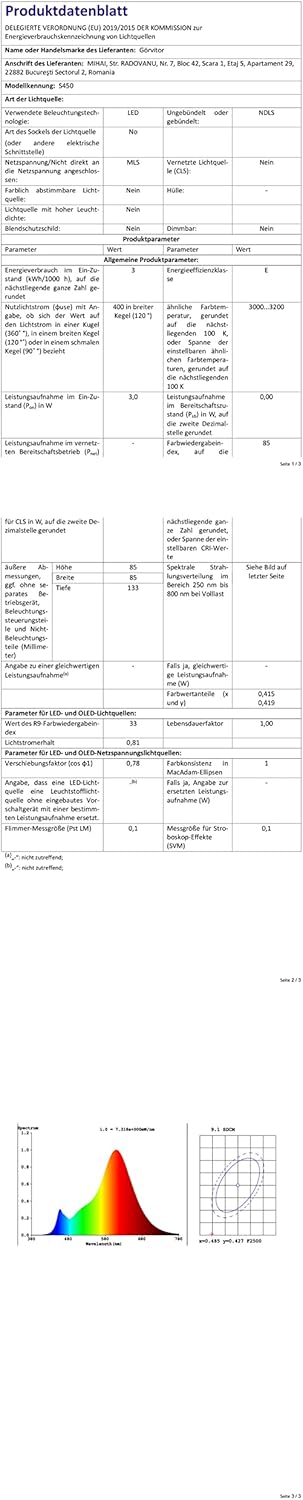 Power: 3W (max)Battery: 1800 mAh / 3.7 VInput voltage: 5V / 1AWeight: 264 g / 0.58lbProduct Dimensions: 8.5 x 8.5 x 13.5 cm / 3.3 x 3.3 x 5.3 inchCharging time: 3-4 hoursMaximum usage time: 11-15 Hours(After a full charge) 80 hours (at lowest brightness)