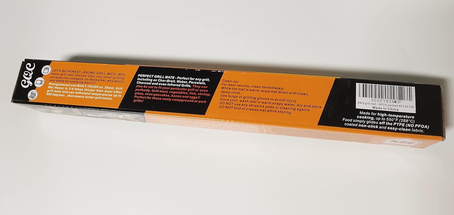 Super BBQ Grill is Your Necessary Tool in Your Daily Life,You will Feel the BBQ Fun by Using the Grill Mat! Our BBQ Grill Mat are Made from 100% PFOA-Free Materials and Premium PTFE-Fiberglass Coating, NO PFOA,Silicone or Other Dangerous Chemicals! You can Use it Safely and Without Any Harmful Chemicals Infiltrate Your Food,the Grill Mat Make Barbecue, Cooking, Baking Easier! ATTENTION: 1.DO NOT place directly on charcoal. Lay the mat over the grill grates approx 7 inches from the burners. 2. When the use time exceeds 30 minutes, the maximum temperature cannot exceed 260F; when used for a short time, the maximum temperature cannot exceed 500F. 3.Avoid scratching the mat with sharp or metal tools, cool it before cleaning the mat and Dry with a soft cloth Grill mats (also called grilling sheets and bbq grill mats) are a revolutionary new way to get better results from your grill. Made from PFOA-free PTFE (more commonly known as Teflon, and the ingredient that makes our grill mats non stick); grill mats provide a non stick cooking surface for your grill that makes grilling easier and more enjoyable. The use of a grill mat allows meat to stay tender and juicy so the flavor sticks to your food, not to your grill. They’re also dishwasher safe, making cleanup a breeze! Even beginners can grill like a pro! Imagine no more flare ups when cooking foods like chicken, burgers, sausages, bacon, or steaks. No more veggies falling through the cracks. No more no more fish sticking to the grill grates. No more using tin foil on public park grills, and no more time spent scrubbing away at your grill! With a GQC Non Stick BBQ Grill Mat, these common grilling pitfalls are things of the past. Now everyone — even beginners, can grill like a pro! Don’t worry about scorching your food, sticking the barbecue mat,producing a lot of unhealthy oils and fumes,make food is very healthy and delicious. Eliminates flare, these mats can be used to grill ANYTHING Vegetables, meat, fish, pizza,etc,. even be used for pancakes,You can use it on the grill,oven, etc,.and cut the grill mat into the shape you want.It’s really amazing!