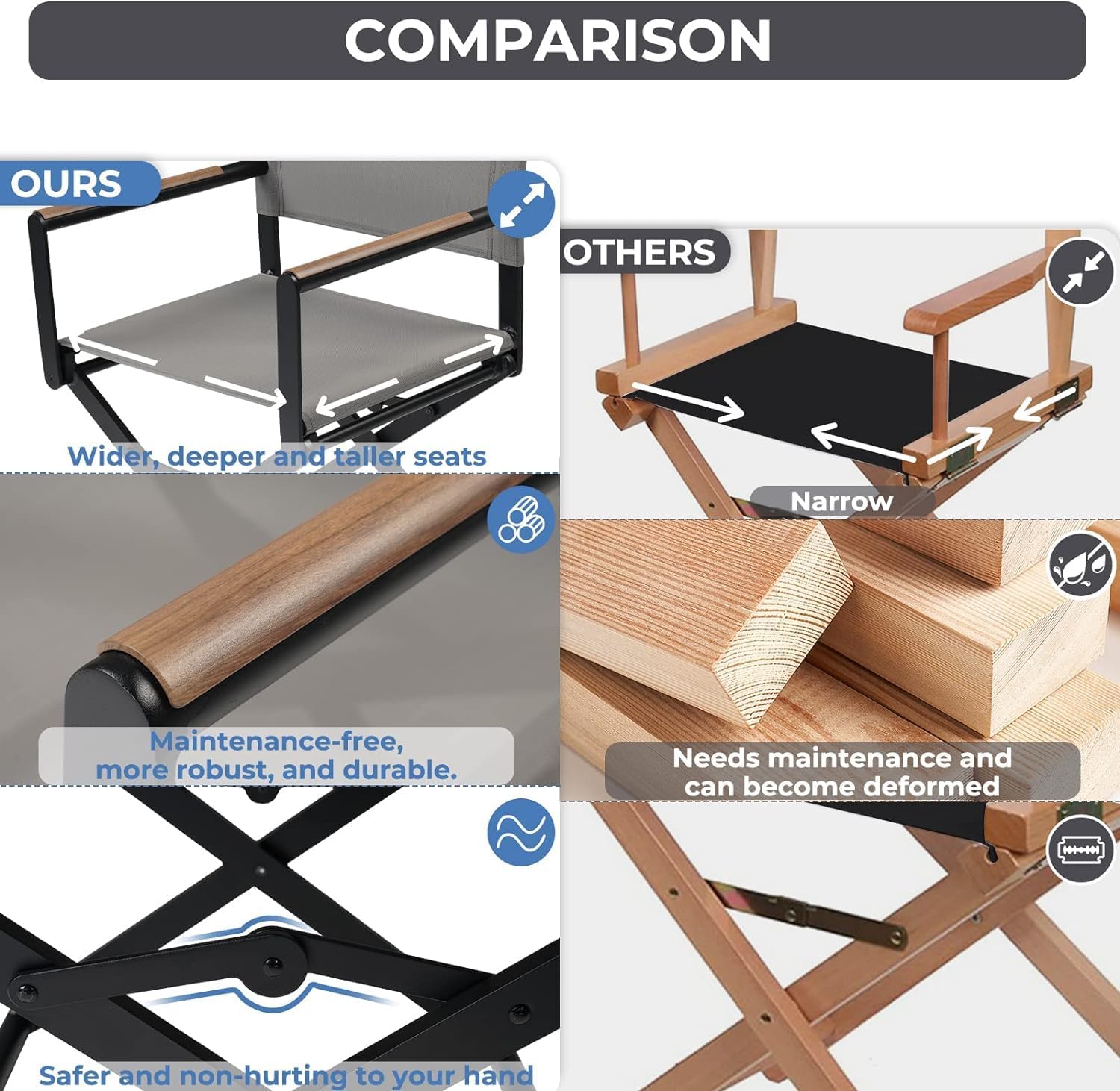 Grand patio Folding Director Chair Outdoor Indoor Aluminum Mesh Sling Chair Lightweight Wood Grain Camping and Hunting Chair for Garden Pool Leisure -Grey
