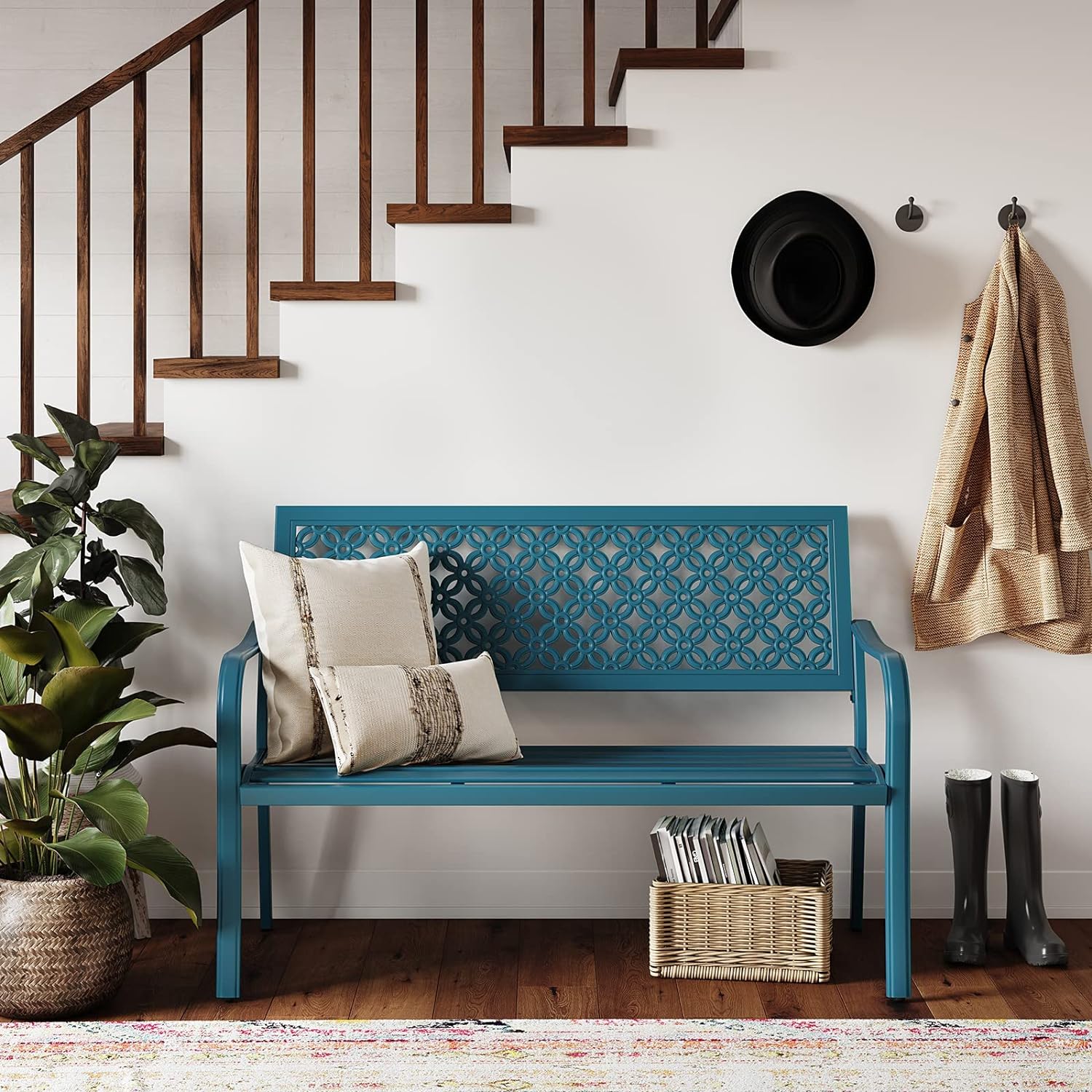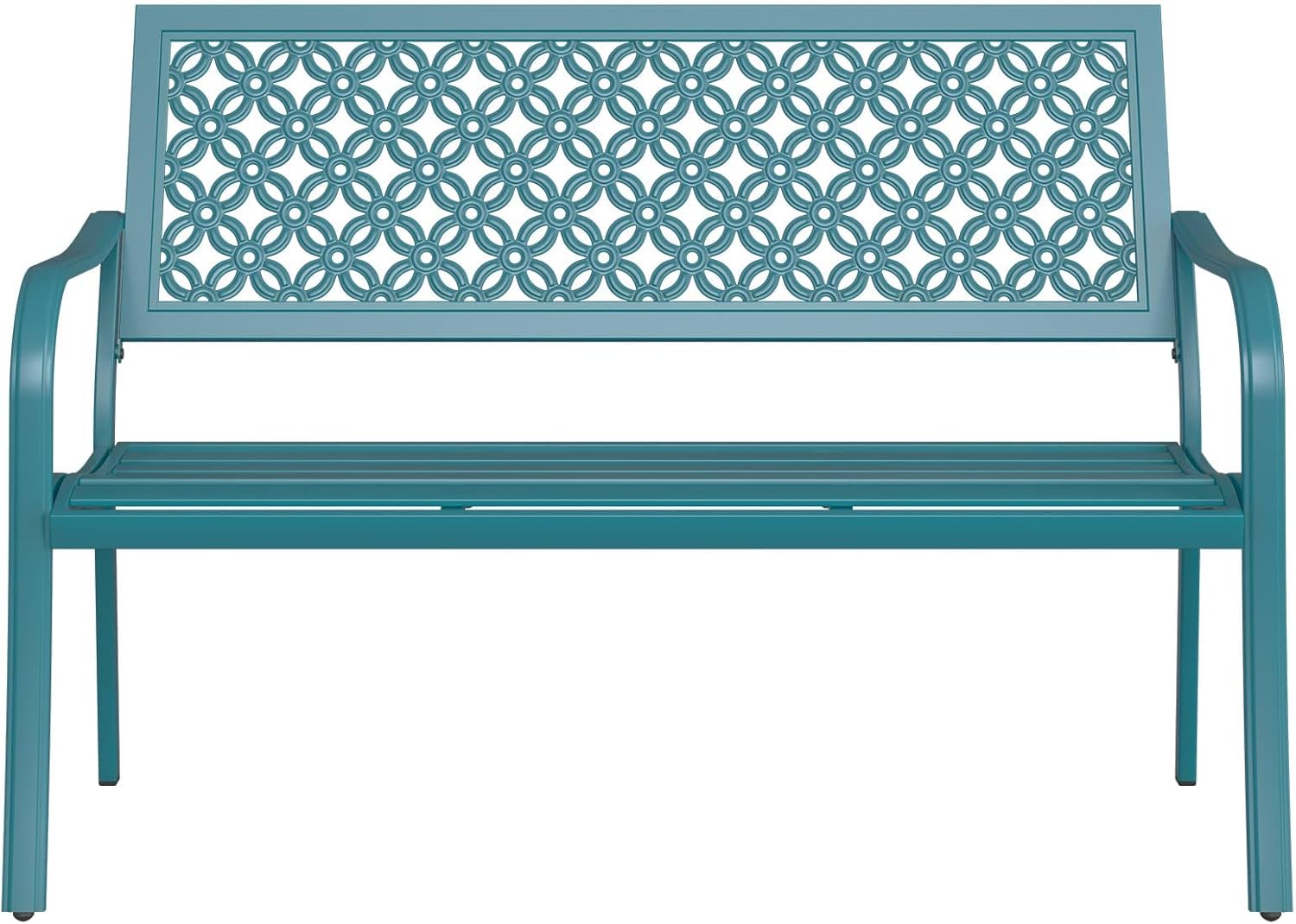 Grand patio Garden Bench, Outdoor Bench with 2-3 Seater, Rust Resistant, Stamped Pattern, Choice of Colours, Suitable for Indoor, Outdoor, Patio, Park (Blue)
