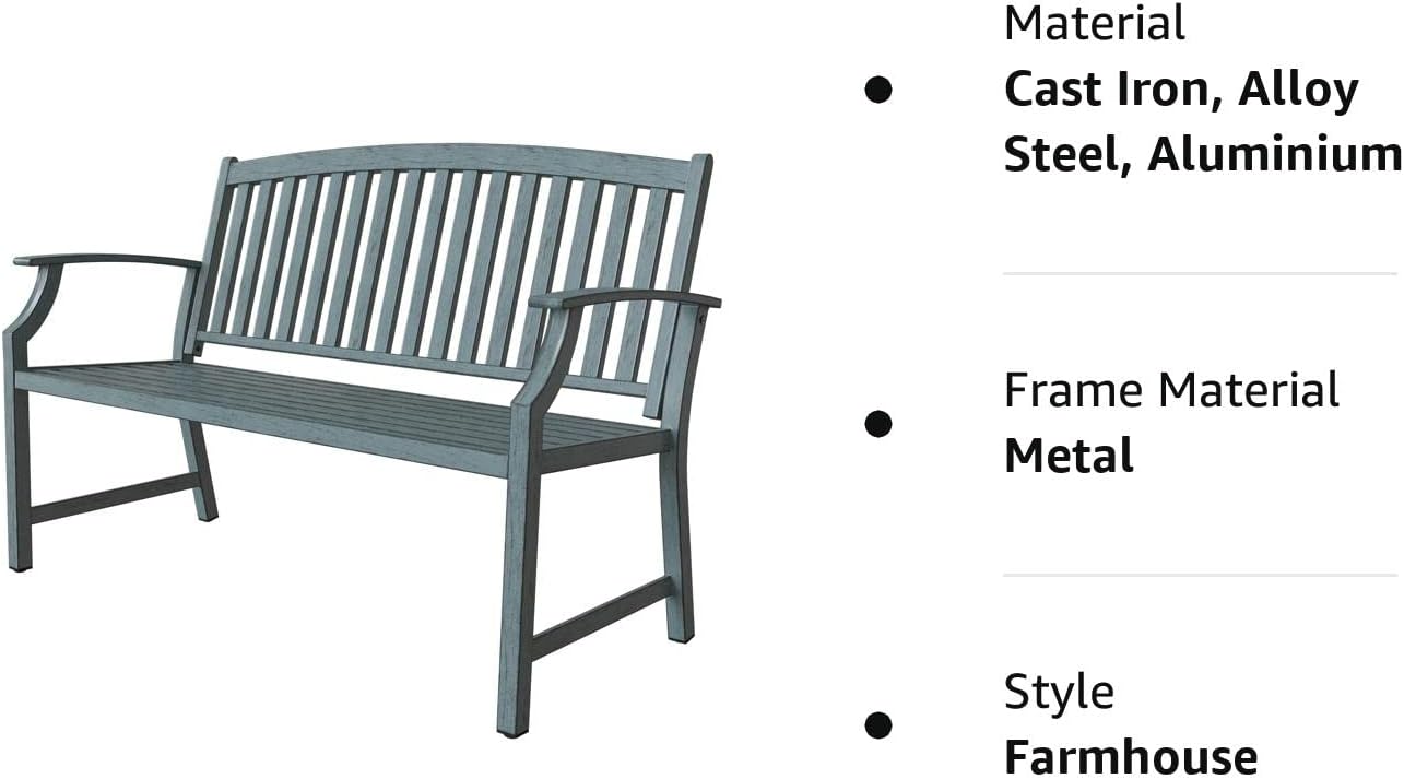 Grand patio Outdoor Bench, Garden Bench with Anti-Rust Aluminum Steel Metal Frame, Choice of Colours, Suitable for Indoor, Outdoor, Patio, Park (Gray Blue)
