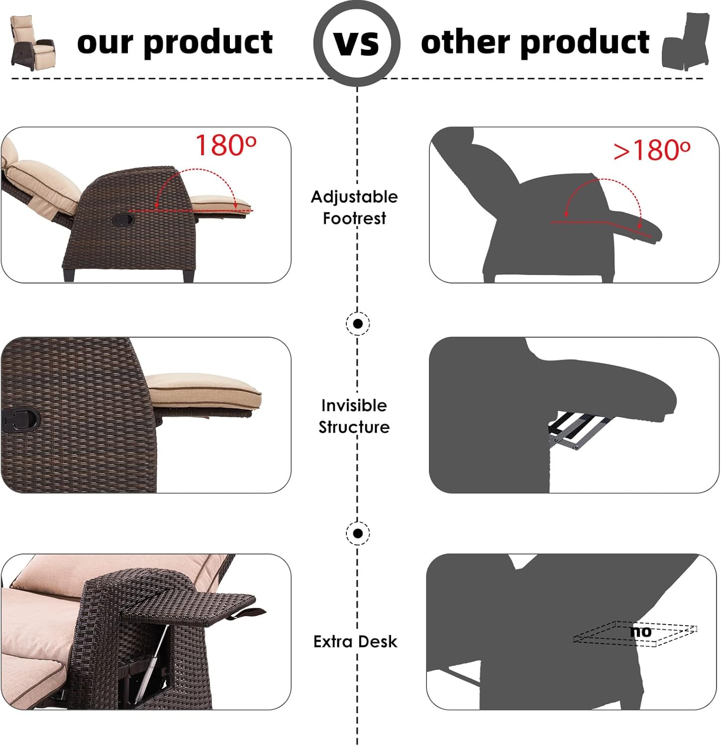SMOOTH MOTION: This push-back reclining patio chair provides a continuously variable angle for relaxing. Find the perfect position for napping, chatting with a fully reclined angle of 150 degrees.