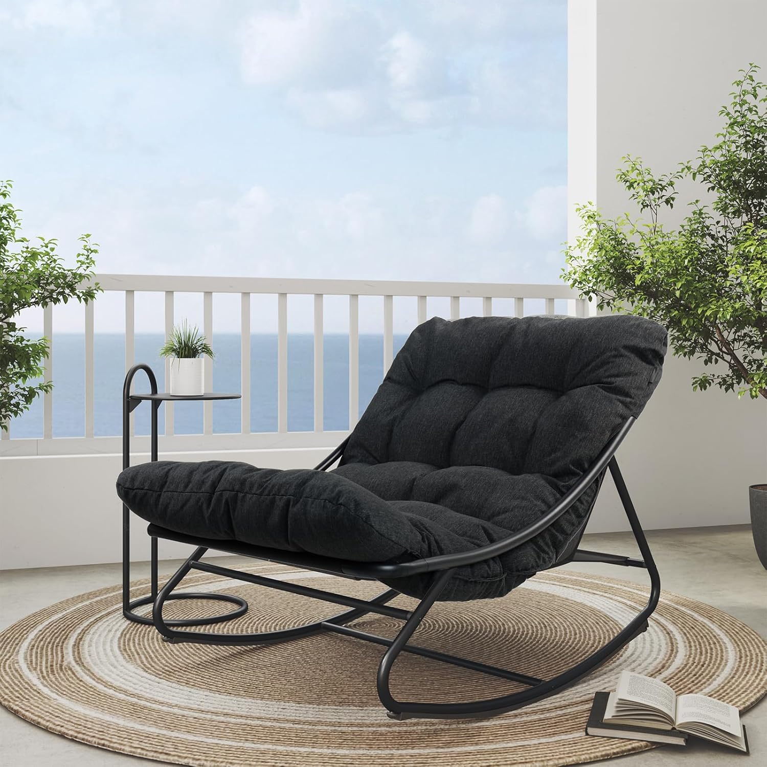 MODERN STYLE: Elegant curves and modern colors make this garden rocking chair a standout. Its minimalist style fits seamlessly into any decor, while the portable side table provides a handy spot for your coffee cup. Perfect for use in the living room, patio, yard, garden, or by the poolside.