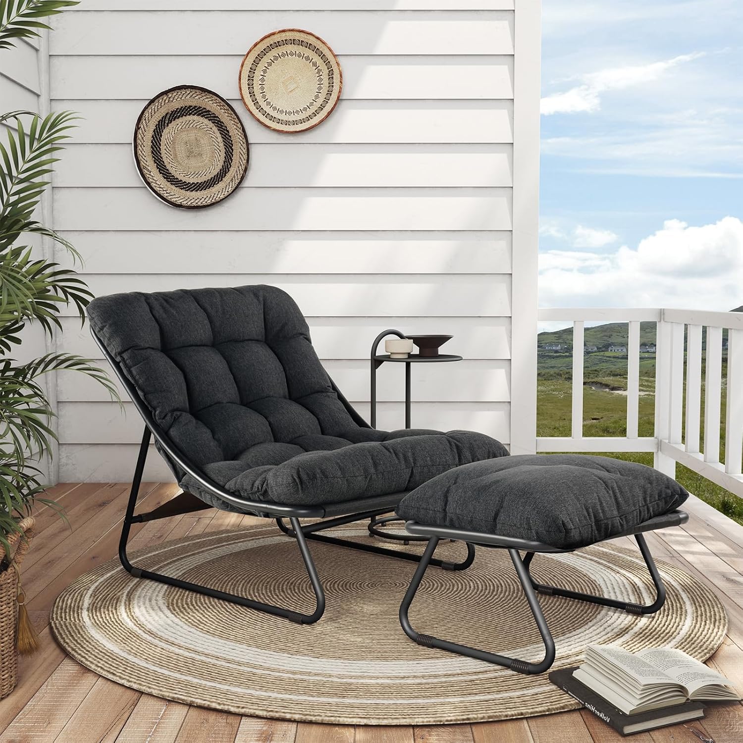 MULTI-PURPOSE OTTOMAN: The patio recliner chair with footstool can make you sit or lay freely, cozy up with a book in the sunroom, or take a nap in the afternoon. The large ottoman with cushion can support your feet, relax your body, and serve as an extra seat. Practical and ingenious design adds more flexibility and comfort to your home space.