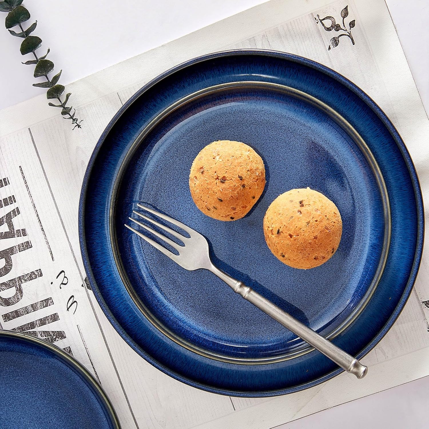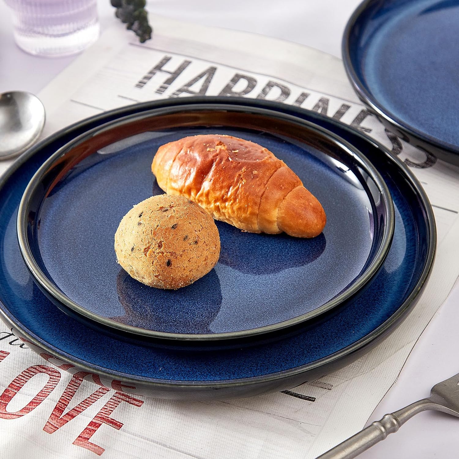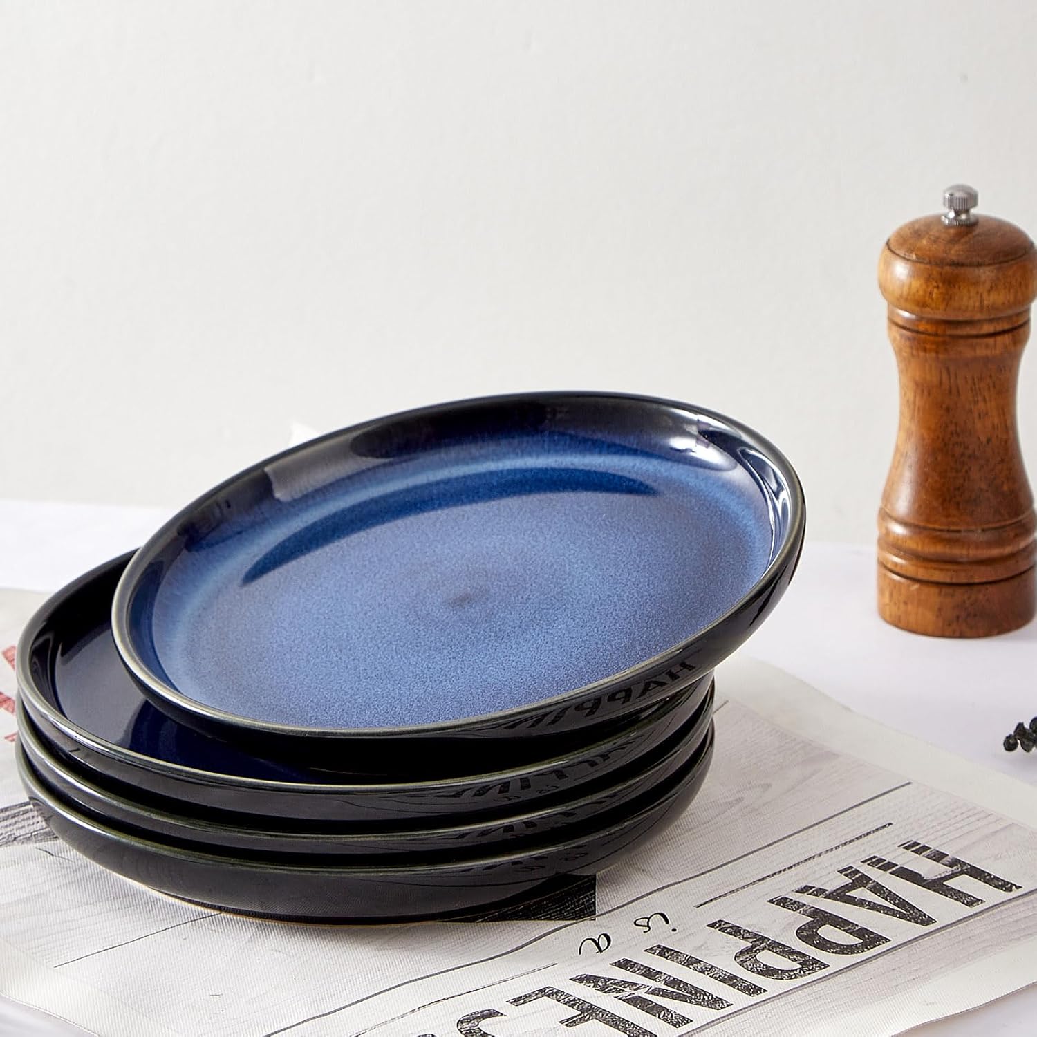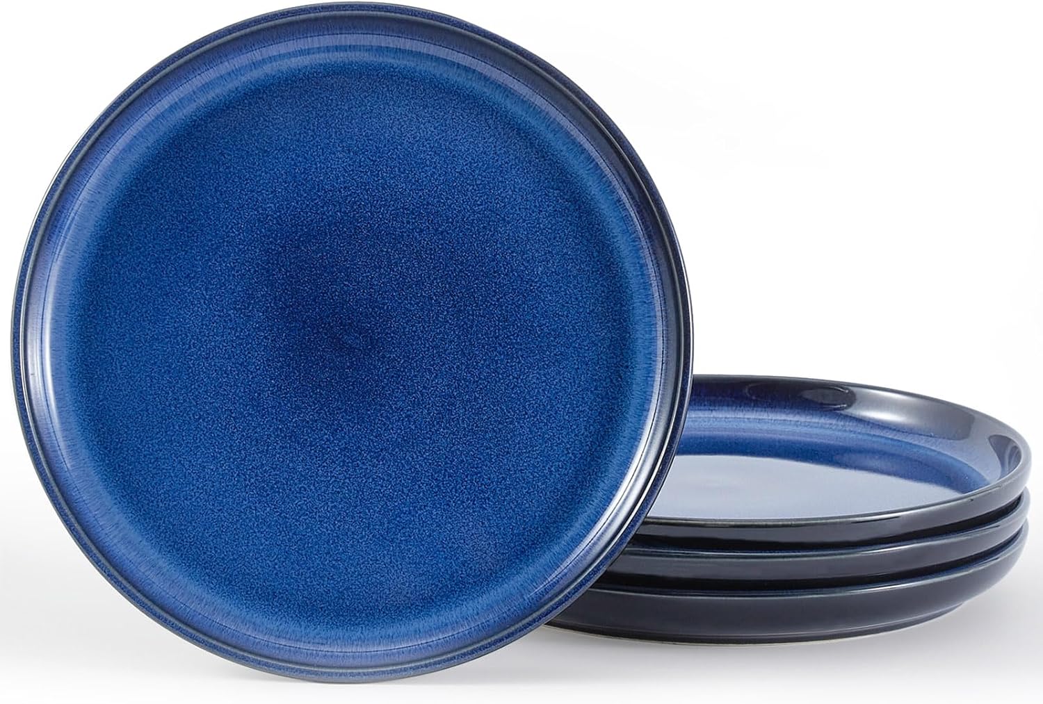 GRANDWISH 10 Inch Ceramic Plates Set of 4, Porcelain Round Dessert Salad Plates, Stoneware Dinner Plates (Blue)